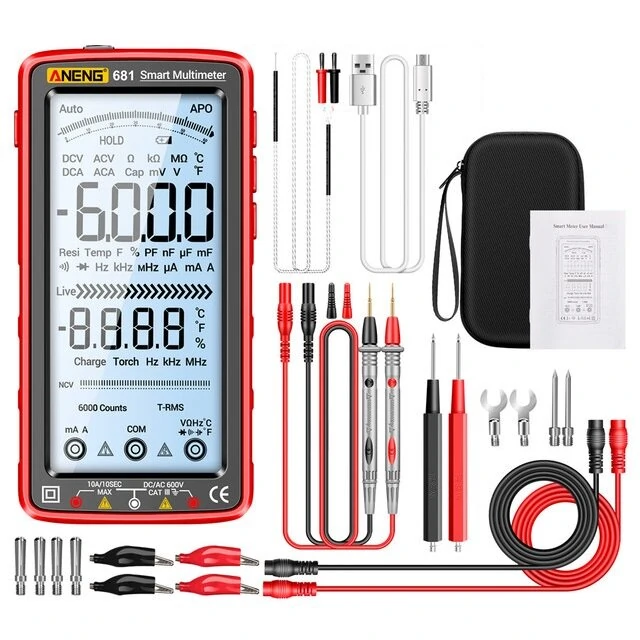 الميزات:هذا المنتج هو متر رقمي 3 5/6 بأداء مستقر وجودة موثوق بها. يعتمد المقياسشاشة عرض LCD مع عرض شريط تناظري.اللون: أسود / أحمرالنموذج: 681 / 681 برو- 681 هو جهاز قياس رقمي محمول بعداد 6000 عبوة نسبة حقيقية فعالة تلقائية للقيمة. - يتعرف ويقيس 681 تلقائيًا وفقًا للإدخالات المختلفةإشارات الجهد / الحالة الحالية / المقاومة / الخ.- 681 لديها خصائص الأداء المستقر والدقة العالية والقراءة الواضحة.- 681 لديها أيضًا وظائف مريحة إضافية لاختبار الكشاف الضوئي.- 681 هو أداة وأداة مثالية مناسبة للمصانع والتعليم وعشاق الإلكترونيات.- بطارية Li-on مدمجة، الشحن المباشر.تخصيص:وظيفةنطاققرارالدقةالجهد المستمر0~1000V0~1V±(0.8%+10)جهد AC0~750V0~1V+/- (1.0%+10)التيار المتردد0~10A0 ~ 0.01A±(2.5%+10)تيار مستمر0~10A0 ~ 0.01A±(2.5%+10)السعة الكهربائية0nF ~ 100mF0nF~0.1mF±(5.0%+5)مقاومة0Ω~60MΩ0Ω~0.01MΩ±(2.5%+5)درجة الحرارة℃-40 ℃~1000℃1℃±(1.9%+5d)درجة الحرارة °F-40°F~1832 °F1°F± (1.9٪ + 6d)Hz0-999.9كيلو هرتز0~0.1 كيلوهرتز±(0.8٪ + 3d)تصْحِيحُ خَلِيَّةِ الْأَشْعَةِ √التنبيه عند جهد VNC√بيب التشغيل والإيقاف√تنبيه استهلاك الطاقة المنخفضة√إغلاق تلقائي للسيارة√مصباح يدوي√احتفظ بالبيانات√شاشة ساطعة مضاءة من الخلف√مادة ABS/سيليكوننار صفرية√ساعة قلم mموادلون نحاس / سيليكون غلاف سيليكون√خط الشحن√باستخدام قلم الحبر√يقود الاختباروفقًا للاختيارخط الحرارة√النموذج681عدد ماكس6000 يحسبحجم المنتج150.8*74.8*23.8 مم/5.94*2.94*0.98 بوصةالتعبئة المضمنة:النوع 1: أسود 6811 x مولتيمتر رقمي1 × خط الحرارة1 x حقيبة تخزين1 x دليل المستخدم باللغة الإنجليزية1 × صندوق التعبئة1 x كابل شحنالنوع 2: أحمر 6811 x مولتيمتر رقمي1 × خط الحرارة1