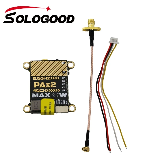 제품 사양:출력 : 0-25-400-800-1500-2500mW입력 전압: 6-36V매개 변수 조정 모드 : 더블 버튼 / OSD동작 전류: 450mA 이하@12V, 800mW12V에서 850mA 이하, 2500mW 이하출력 주파수: 40CH(A-B-E-F-R)안테나 인터페이스: MMCX설치 구멍: 30.5 * 30.5mm비디오 포맷: NTSC/PAL. 자동 감지무게: 12.5g (안테나 및 전원 코드 제외)크기 : 35.5 * 36.5 * 10mm특징:1. 전원 공급의 자체 점검 기능을 사용하여 이미지 전송이 정상인지 빠르게 확인할 수 있습니다.2. 새로운 기계를 시작할 때 동반자에게 방해되지 않는 주파수 잠금 기능3. 0-2.5W 전력은 조절 가능하여 다른 환경에서 원활하게 전환할 수 있습니다.포함된 패키지:1 x SoloGood 5.8G 2.5W VTX1 x MMCX -SMA 피더4핀 와이어 x 1
