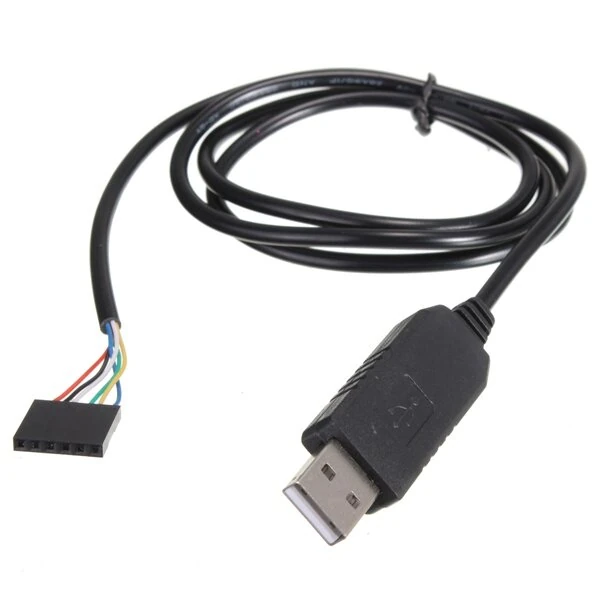 Module adaptateur USB série FT232RL FTDI à 6 broches USB TO TTL RS232 CableFonctionnalités:Les câbles permettent de connecter rapidement et simplement des appareils avec une interface série de niveau TTL à l'USBLes câbles sont disponibles avec un connecteur SIL à 6 voies, 0.1Les niveaux TTL sont de 3,3VLes câbles TTL-232R sont une famille de câbles convertisseurs USB vers TTL série UART intégrant le FT232RQ USB vers série de FTDDispositif IC d'interface UART qui gère toute la signalisation et les protocoles USB. Les câbles permettent de connecter rapidement et simplement des appareils dotés d'une interface série de niveau TTL à l'USB.Chaque câble TTL-232R contient une petite carte de circuit électronique interne utilisant le FT232R, qui est encapsulé dans l'extrémité du connecteur USB du câbleL'autre extrémité du câble est livrée avec une sélection de différents connecteurs prenant en charge diverses applicationsLes câbles sont conformes aux normes FCC, CE, RoHS et sont disponibles aux niveaux TTL 3,3VDes câbles sont disponibles avec soit un connecteur SIL à 6 voies avec un pas de 0,1", une prise audio jack de 3,5 mm, un connecteur à 8 voies avec un pas de 2 mm et une clé (prévu pour une utilisation avec VMUSIC2 ou VDRIVE2) ou des connexions de fils nus étamés.Le côté USB du câble est alimenté par USB et compatible avec USB 2.0 pleine vitesseChaque câble mesure 97 cm (38,19") de long et prend en charge un taux de transfert de données jusqu'à 3 MbaudFil Rouge: 5VFil noir: GNDF