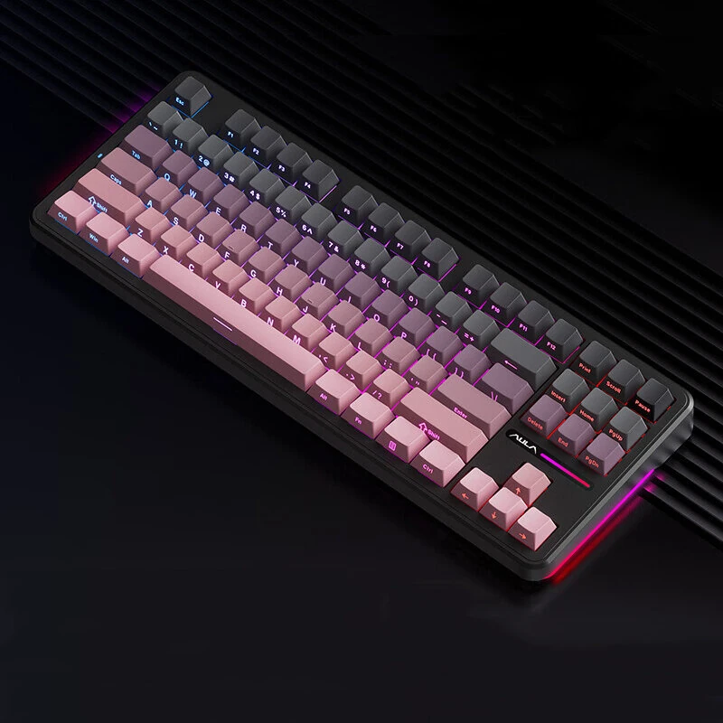 Specifications BrandAulaModelF87 ProKeycapPBT two color injectionBacklightRGBStructureGasket StructureProfileCherry ProfileLayout87 KeysHot SwappableSupportInterface2 4G USB bluetooth5 0Battery8000mAhCable length1 5MSize41 2 18 5 6 6CMFeatures 1 3 mode connection2 Full key hot swapping3 Gasket structure4 Full key without impulsePackage Includes 1x Aula F87Pro Mechanical Gaming Keyboard1x Cable1x Manual1x Package Box