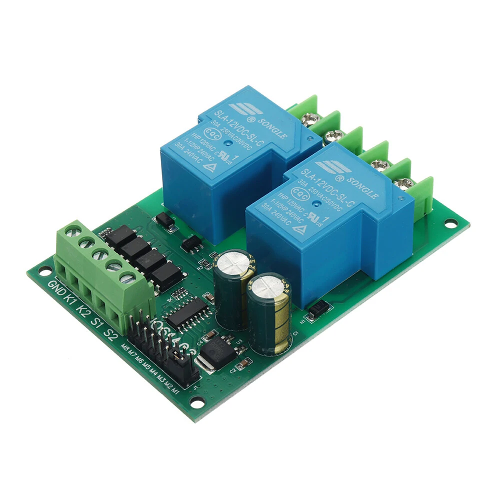 دليل: انقر هنا للفتحمعلمات المنتج: الجهد العامل: DC 12V (الإصدار 12V) أو 24V (الإصدار 24V) (قوة تزويد الطاقة DC ≥ تحميل المحرك x3)المحرك المناسب: محرك DC مدار مع فرشاة3. التيار الأقصى للحمل: 15 أمبير (الحمل الأقصى للريليه 30 أمبير)؛4. إشارة الدخول: منخفضة النشاط (NPN)5. أنماط العمل: 9 أوضاع اختيارية ، بما في ذلك لحظي ، قفل ذاتي ، إلخ.6. تيار العمل (باستثناء المحرك): تيار السكون: 5MA ، التيار العمل إلى الأمام أو العكسي: 70MAالحجم: 89 * 62 * 22 ممالوزن: 86 غراماًوصف الدبوس: VCC: مزود طاقة +جي إن دي: إمداد الطاقة -M + : محرك +M-: محرك -GND: إشارة المشغل -K1: تحكم المدخلات الأماميK2: التحكم بالمدخلات المعكوسةإشارة حد الأمامS2: إشارة الحد العكسيالمنتج المشمول:1 x 30A ريليه DC 12V 24V تحكم في الاتجاه الأمامي والخلفي للمحركمخطط السلك تحويل 1: وضعان (مفتاح) تناوب(التحرك إلى الوراء والأمام في خط مستقيم.)مخطط الأسلاك 2: بدء الإيجابي والسلبي بشكل مستقل، في كل مرة تشغيل نقطة واحدةمخطط الأسلاك 3: في كل مرة تبدأ فيها، قم بتشغيل دوران إلى الأمام وعكس الاتجاهيحتوي هذا الوحدة على 4 محطات إدخال إشارة ، وهي ''K1'' ، ''K2'' ، ''S1'',''S2'' ، K1 هي محطة إدخال إشارة تدور للأمام ، K2 هي محطة إدخال إشارة تدور للخلف ، و S2 هي محطة إدخال إشارة حد للأمام ، و S2 هي محطة إدخال إشارة حد للخلف. يمكن تحديد مصدر إشارة الإدخال من مفتاح ميكرو ، والكشف ، والأشعة تحت الحمراء ، والمعدن ، وجهاز التحكم عن بعد وغيرها من الوحدات ، ويمكن أيضًا التحكم بها بواسطة رقاقة الحاسوب المصغرة.