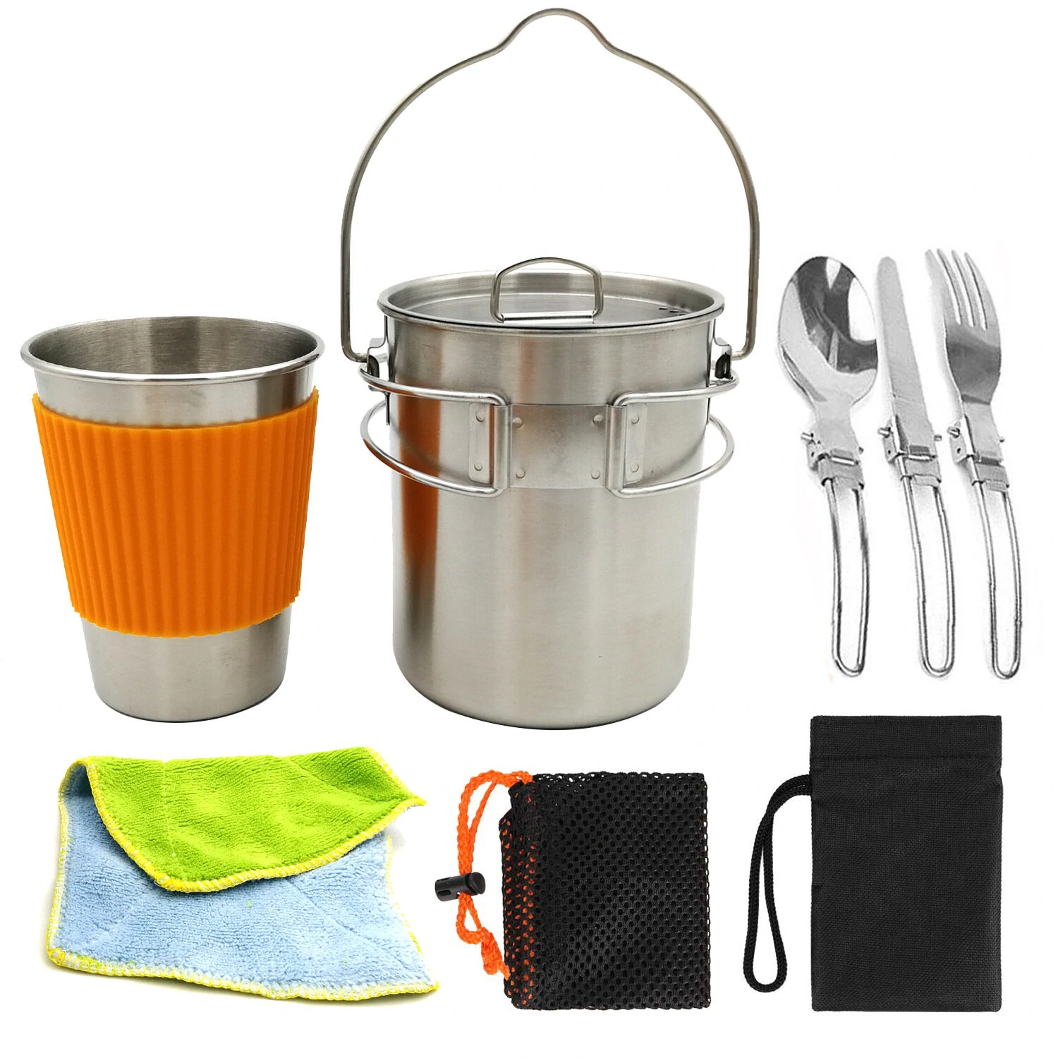 Spécification:Nom du produit: ensemble de tasses suspendues en acier inoxydableTaille du produit : diamètre 9 cm hauteur 12 cmMatériau : acier inoxydable 304 de qualité alimentaire, l'épaisseur du corps de la casserole est d'environ 0,6 mm et la poignée est directement de 5 mmCapacité : 750 mlPoids du produit : 0,48 KGTaille du colis individuel : 10,5x12x13 cmFonctionnalité:Mini cuisinière pliable ; peut économiser de l'espaceTasse en acier inoxydable avec protecteur isolant en siliconePoignées antidérapantes et anti-chaleur sur les casserolesAlliage d'aluminium de haute qualitéStructure solide et durablePeut être plié dans un sac de rangement pour un transport facileIdéal pour le camping, la randonnée, la chasse, le sac à dos, les pique-niques et autres activités de plein airFacile à nettoyer: Livré avec un chiffon de nettoyage absorbant l'huile, il est très facile de nettoyer tout le matériel lors du camping en plein air.Facile à transporter : Les poignées pliables de la casserole ou de la cuisinière peuvent être repliées pour gagner de la place. De petite taille et portable, tous les objets de cet ensemble de cuisine peuvent être rangés ensemble dans un sac en filet pour un transport pratique.Profitez de la cuisine où que vous alliez: cet incroyable ensemble de cuisson est conçu pour tous ceux qui aiment le camping en plein air ! Il est super portable, ce qui le rend beaucoup plus pratique pour le camping, la randonnée, le sac à dos, le pique-nique et autres activités en p