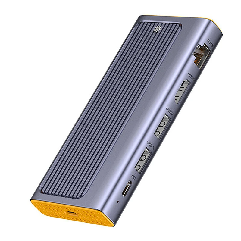 사양:제품명M.2 하드 드라이브 박스+독킹 스테이션모델X0165색깔은재료알루미늄 합금입력 인터페이스타입-C출력 인터페이스USB3.2*2 / USB-C PD100W / 4K HD / RJ45 이더넷 / M.2 NVMe&SATA SSD 케이스전송률10Gbps크기 (가로 * 세로 * 높이)119.1*54.5*16mm무게140g특징: 1. 6-in-1 멀티 포트 연결:포괄적인 연결 및 확장 옵션을 위해 USB3.2*2,USB-C PD100W,4K HD,RJ45 Ethernet 및 M.2 NVMe&SATA SSD 케이스를 결합합니다.2. 고속 데이터 전송:최대 10Gbps의 전송 속도를 지원하여 빠른 데이터 전송과 효율적인 워크플로를 보장합니다.3. 다양한 저장 호환성:NVMe/SATA 듀얼 프로토콜 M.2 인클로저가 내장되어 있으며, 최대 4TB의 M.2 M-key SSD와 호환되어 다양한 저장 요구를 충족합니다.4. 강력한 충전 용량:장치의 강력한 충전 지원을 제공하는 USB-C PD100W 포트를 갖추고 있어 지속적인 생산성을 보장합니다.5. 컴팩트하고 세련된 디자인:고급 알루미늄 합금으로 제작되어 119.1*54.5*16mm의 컴팩트한 크기와 140g의 가벼운 무게로 휴대성이 뛰어나며 어떤 작업 공간에도 쉽게 통합할 수 있습니다.포함된 패키지:1x X0165 6-in-1 타입-C 독싱 스테이션