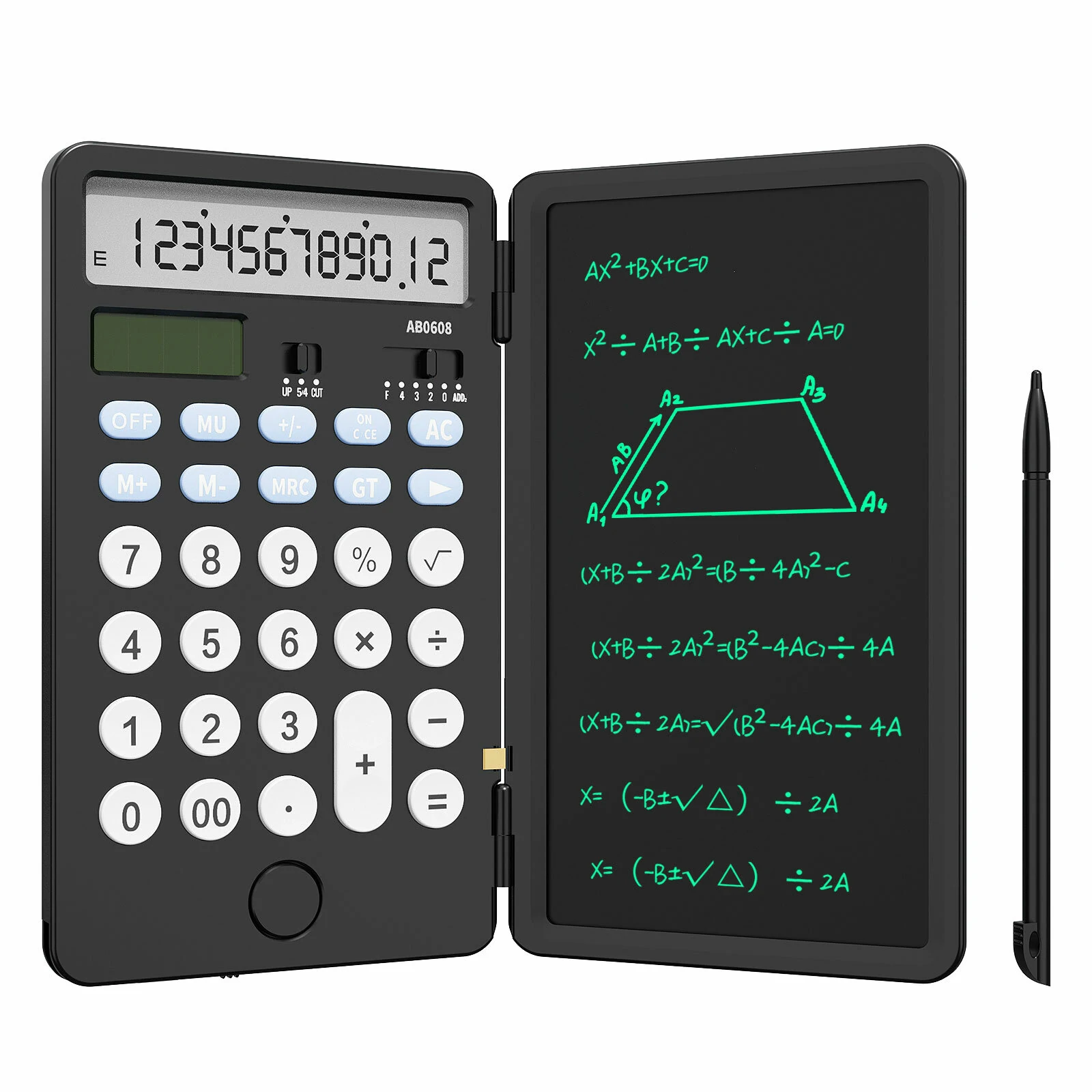 Özellikler:【Not defterli hesap makinesi】6,5 inçlik yazı masasıyla donatılmış olduğundan, sol alt köşedeki stilüs kalemi kullanarak hesaplama yaparken notlar alabilir veya grafik çizebilirsiniz.【Hafif ve Taşınabilir】Cebinizde taşıyabileceğiniz, yalnızca 4 oz ağırlığında olan cep hesap makinesi, küçük bir boyuta katlanabilir. İşe, okula, cepte, evrak çantanıza sığdırabilirsiniz.【Daha Hassas Tuş】NEWYES temel hesap makinesinin düğmesi, silikon düğmeden daha hassas olan kaliteli ABS plastik malzemeden yapılmıştır. Tekrarlayan basışlar hassasiyetini etkilemez.【Şarj Edilebilir ve Güneş Enerjisi】Masaüstü hesap makinesi, güneş panelleri ve Type-C şarj kablosu ile çalıştırılabilir. Tek bir şarj ile 3 aydan fazla dayanır.【Kilitli ve kilitsiz tasarım】 Notlarınızı düğmeyi kilitli konuma getirerek saklayabilirsiniz. Notları silmek isterseniz, lütfen kilitsiz konuma getirin ve silmek için sil düğmesine tıklayın.Hafif ve taşınabilirSadece 4 oz ağırlıkBoyut: 15cm x 9cm x 1cm / 5.9in x 3.54in x 0.39inKatlanabilir ve kolayca depolanabilirCebinize, çantanıza veya okul çantanıza koyabilirsinizToza dayanıklı ve kolay hasar görmeyenPaket Boyutları7.09 x 3.7 x 0.67 inçÜrün Ağırlığı5.9 ouncesASINB0C36GCC5QÜrün model numarasıAB0608Piller1 Lityum Polimer batarya gereklidir. (dahil)
