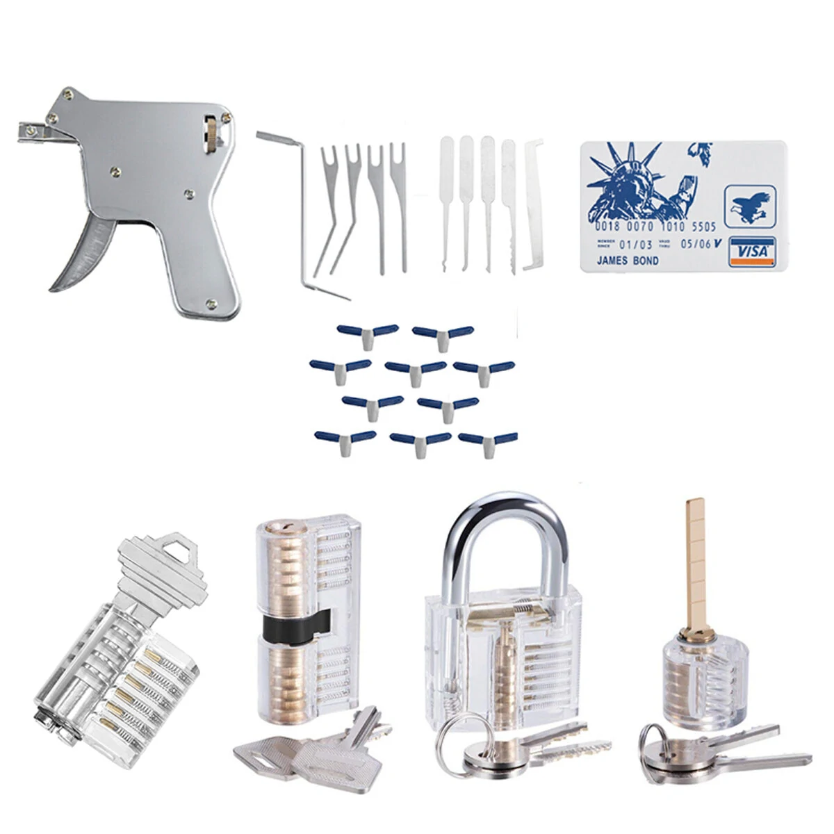 Özellikler:Kapsamlı Kilit Açma Seti: Çeşitli kilit açıcılar, raflar, kancalar, bir çukur raf ve kırık bir anahtar çıkarıcısı içerir. Çilingirlerin ve kilit açma hobilerinin özel ihtiyaçlarını karşılamak için özel olarak tasarlanmıştır. Yüksek Kaliteli Malzemeler: Araçlar dayanıklılık ve uzun ömür için güçlü, yüksek kaliteli çelikten yapılmıştır. Özellikle küçük veya dar anahtarlı kilitleri açmak için tasarlanmışlardır. Uygulama için Şeffaf Kilit: Başlangıç için mükemmel olan şeffaf bir kilit sunar. Kesitli uygulama kilidi, dahili bileşenlerin nasıl çalıştığını görmenizi sağlar, bu nedenle mükemmel bir eğitim ve eğitim aracıdır. 5-in-1 Kart Araçları: Bu kilit açıcı araç seti, depolama ve taşıma için uygun bir kredi kartı boyutlu kılıfta 5 kilit açıcı ile birlikte gelir. Kilit açma becerilerinizi uygulama ve geliştirmek için mükemmel. Çok Yönlü Kilit Açma Aracı: Çoğu pim tumbler kilidini ve çift parça araba kilidini açmak için kullanılabilir. 4 seçim bıçağı ve 1 gerilim anahtarı ile birlikte gelir.Özellikler:Miktar: 30 ADETÜrün rengi: GümüşMalzeme: Yüksek kaliteli çelik ve metalKilit Açma Aracı Boyutu: 10,2 cm x 1,3 cm x 10,2 cmKilit Açma Boyutu (Kredi Kartı Kılıfında): 7,3 cm x 1,2 cm x 0,2 cm Paket içeriği:1 x Kredi Kartı Kılıfı5 x Yüksek Kaliteli Pick Hooks4 x Kilit Setleri4 x Anahtarlar1 x Kilit Açma Aracı10 x Kilit Shims4 x Torsiyon Araçları1 x AnahtarDetaylı Resimler: