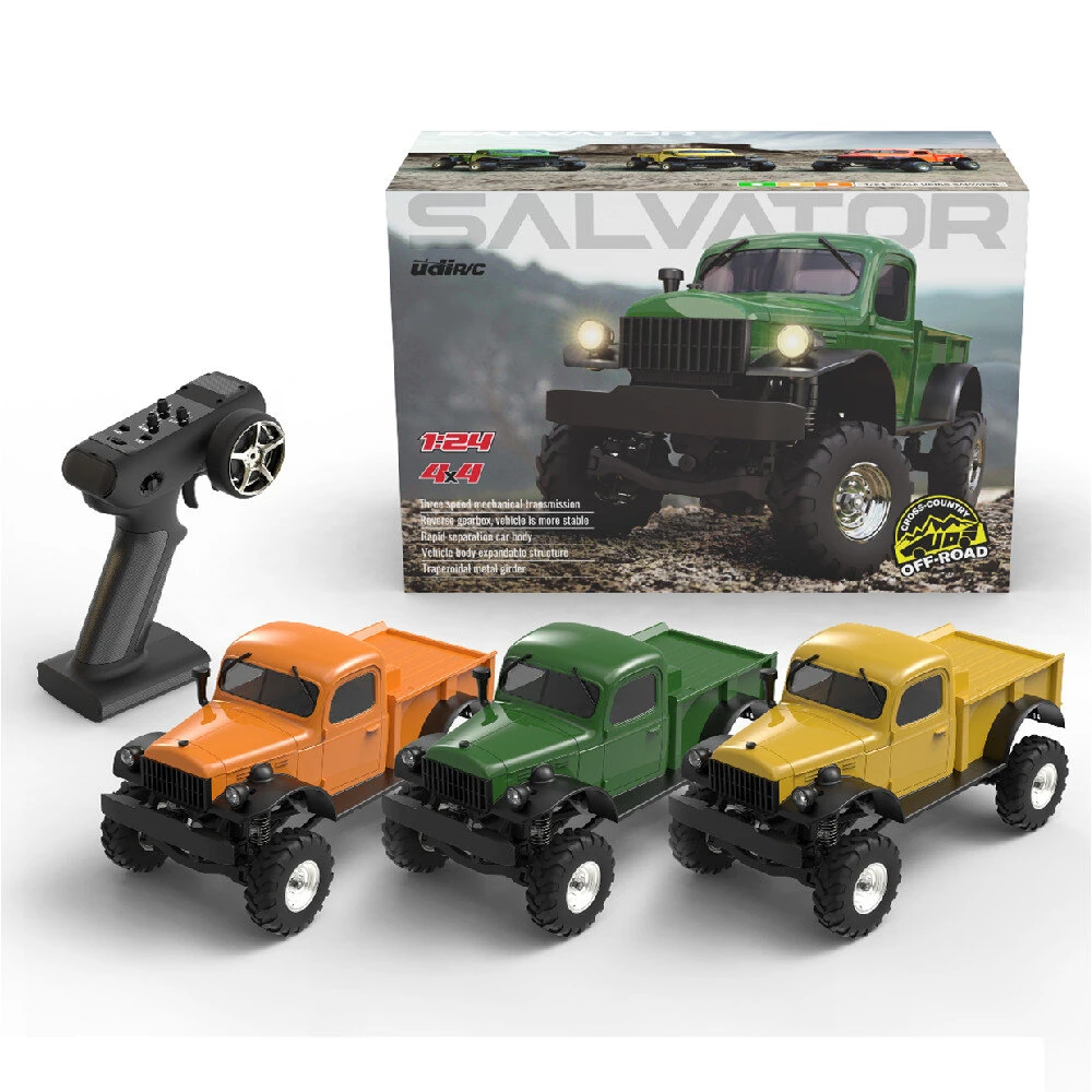 설명:B기본 정보브랜드: UDIRC품목 번호: UCX2401규모: 1/24색상: 녹색, 주황색 및 노랑색최고 속도 : 15km/h전력 시스템ESC : 30A 2.4G 4CH 브러시 esc모터:130 브러시드 모터스티어링 서보: 5g 3 철사 0.5kg 토크 스티어링 서보송신기주파수: 2.4G채널: 4CH원격 거리: 60m필요한 배터리: 4X 1.5V AA 배터리 (별매)배터리 자동차용 배터리: 7.4V 360mAh XH-3P 리튬 이온 배터리배터리 충전 시간: 약 1시간배터리 사용 시간: 약 30분기타재료: PA+금속+전자 부품차량 무게: 약 250g (배터리 무게 포함)접근 각도: 67°출발 각도: 46°기어 비율 (고속 / 저속) : 1 : 9.3 / 1 : 58.6크기자동차 크기 : 188*93*97mm앞/뒷바퀴 간격: 79mm휠베이스: 120mm지상 클리어런스: 22mm바퀴 지름/폭: 41.5mm/13mm휠 허브 직경: 21.5mm최대 배터리 트레이 크기: 55*30mm헥스 어댑터: 7mm기와: 1.5mm박스 크기: 256*127*184mm 특징:작은 몸으로 큰 재미1/24 플랫폼의 모든 재미, 모험 및 실감 나는 오프로드를 경험할 새로운 방법. SALVATOR는 소형 크롤러 시장과 1/18 규모의 품질과 성능 사이의 간격을 메꿔줍니다. 오일 충전식 충격 흡수, 강철 I빔 및 부드럽게 구동되는 역방향 기어 전달 체계를 갖추어 바위, 풀 및 테이블탑에서 주행할 수 있습니다. 타이어의 좁은 회전 반경과 정확한 스로틀 제어는 놀라운 조종 성능을 제공합니다.즐거움에 딱 맞는 크기,SALVATOR는 이동 중에 가방에 쏙 들어가는 완벽한 크기입니다. 작고 강력하며 가볍게 조종 가능하여 거의 모든 공간이 순간적으로 트레일이나 기어링 코스가 됩니다. 실내의 책 산더미든 뒷마당의 암석 정원이든,SALVATOR는 항상 큰 재미와 모험을 위해 준비되어 있습니다.다용도 터레인,SALVATOR는 그리피한 소프트 고무 타이어,정밀 공학 멀티 링크 서스펜션 기하학 및 부드러운 오일 품질로 고난한 오프로드 지형에 대처하기 위해 장착되어 있습니다. 높은 중앙 바닥 간격,큰 접근 각도 및 낮은 CG는 SALVATOR가 갈 곳마다 인상적인 능력을 갖추고 있습니다.30° 핸들 각도는 SALVATOR에게 특히 작은 회전 반지름과 공간에서의 극단적인 기동성을 제공합니다. 0.5kg의 스티어링 서보는 강력한 조향 권한을 발휘하여 두꺼운 카펫 위에서도 탁월한 성능을 발휘합니다.유압충격 흡수기, SALVATOR의 유압 충격 흡수기는 바퀴가 울퉁불퉁한 지면에 단단하게 고정되어있을 수 있도록 매끄러운 서스펜션 감쇄를 제공합니다. 추가된 제어는 거친 지형에서 바디가 튀는 것을 방지하여 더 현실감 있는 운전 경험을 제공합니다.클립없이 장착 된 자세한 ABS 바디, 혁신적인 클립없는 바디는 클립을 잃지 않고 번거로운 후크 및 루프 탭도 없이 몇 초 만에 제거하고 설치할 수 있습니다. 튼튼하고 매우 디테일 한 ABS 바디는 칩이나 스크래치가 나지 않는 깊은 윤기있는 마무리로 제작되었습