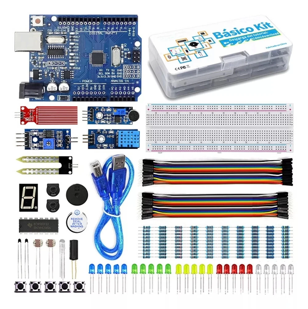 Forfait inclus:1 PC carte de contrôleur Rexqualis CH3401 PC 830 Panneau25 PCS LED1 PC LED RGB2 pièces de photoresistance2 PCS thermistor1 PC Interrupteur à basculeEnsemble de 5 boutons (petit)1 PC écran 7 segments à 1 chiffre1 PC IC 74HC5951 PC buzzer actif1 PC Buzzer passif1 PC Module de Température et d'Humidité DHT112 PCS potentiomètre1 câble USB1 PC Capteur d'humidité du sol1 PC Module de Capteur de Son1 PC Capteur de niveau d'eau20 PCS Câble DuPont Mâle-Femelle20 PCS Câble DuPont Mâle-Mâle10 PCS Résistance (10R)10 PCS Résistor (100R)30 PCSResistor (220R)10 pièces de résistances (330R)10 pièces de résistances (1K)10 PCS résistances (2K)10 pièces de résistances (5K1)10 PCS résistances (10K)10 pièces résistances (100K)10 PCS résistances (1 m)mso-hansi-font-family:Calibri;mso-bidi-font-family:'Times New Roman';font-size:10.5000pt;mso-font-kerning:1.0000pt;">