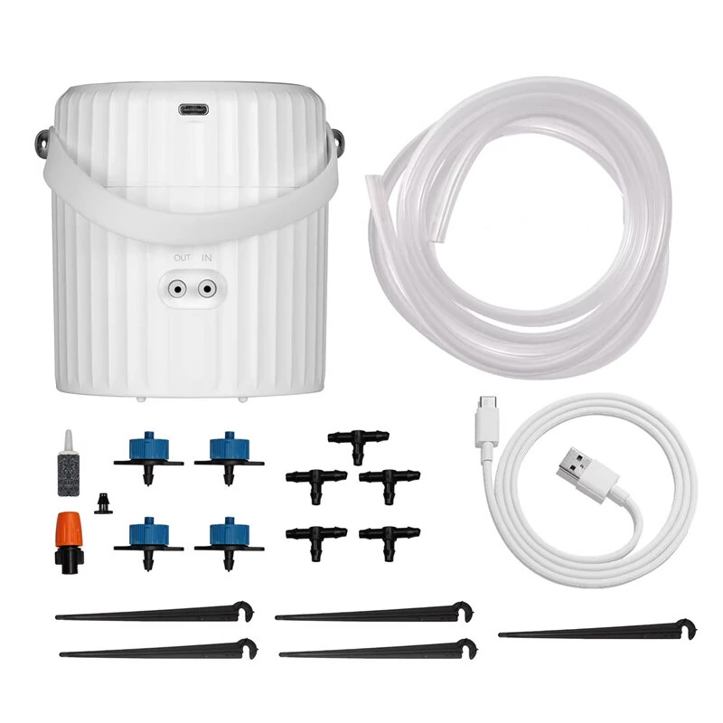Özellikler: Malzeme: ABS+PCÇalışma Ortamı: Normal sıcaklıkBesleme Gerilimi: 5.0-6.0VŞarj Portu: Type-CPompa Su Tedarik Hacmi: 550mL/dkÜrün Boyutu: Φ91.1 x 98.9mmÖzellikler: 1. Otomatik Sulama Programı: Bitkileriniz için akıllı sulama cihazımızı kullanarak kesin sulama programları planlayarak sürekli nemlendirme sağlayın.2. Ekranlı Manuel Mod: Gömülü ekranda ayarları kolayca özelleştirin,gerektiğinde sulama sürelerinin manuel olarak geçersiz kılınmasına olanak tanır.3. Çocuk Kilidi Fonksiyonu: Çocuk kilidi mekanizması,kazara yapılan ayarlamaları önleyerek bitki bakım programınızı korur.4. Bataryaya Gerek Yok: Şarj kablosu ile donatılmıştır,böylece batarya değişimine ihtiyaç kalmaz ve kesintisiz çalışma için sabit güç kaynağı sağlanır.5. Çok Yönlü Sulama Seçenekleri: Cihaz,bitkilerinizin özel ihtiyaçlarına göre sulama yöntemini uyarlamanızı sağlayan çeşitli damlatma ve sprey nozülleri içerir.Paket İçeriği: 1x sulama aracı1x Kılcal Su Borusu (6 m)1x Sprey Ucu4x Damlatma Düzeneği5x Zemin Parçası5x Tee1x Filtre1x Plug1x USB Kablosu (1.5 m) 1x Ürün Özellikleri