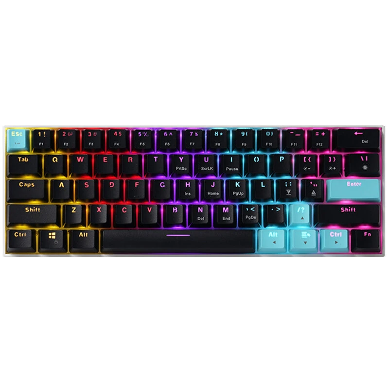 사양:브랜드: 델룩스모델: KM36BU레이아웃: 61 키치수: 290.8 x 100.8 x 38.0 mm무게: 470 ± 20g연결 유형: USB 유선 연결케이블 길이: 1.5미터호환성: Windows 7/8/10, Mac OS 및 기타 시스템용멀티미디어 기능 키: 지원됨특징:1. 이중 색상 주입 키캡: 오랜 색상과 선명함을 위한 고품질 키캡.2. 콤팩트 레이아웃: 60% 키보드 크기로,게임 및 사무실 사용에 적합하게 공간을 절약하고 휴대할 수 있습니다.3. 인체공학적 디자인: 편안한 사용을 위해 설계되었으며,높은 위치에서 낮은 위치로의 키 레이아웃이 편안한 손 자세를 제공합니다.4. 기계식 스위치: 효율적인 타이핑 및 게임 성능을 위한 기계식 스위치로 장착되어 있습니다.5. RGB 조명 효과: 개인화된 경험을 위해 키보드를 통해 제어할 수 있는 여러 RGB 조명 모드 및 효과.6. 플러그 앤 플레이: 플러그 앤 플레이 기능으로 간편한 설정 및 사용이 가능하며, 추가 소프트웨어가 필요하지 않습니다.포함된 패키지:1 x Delux KM36 61키 유선 기계식 게이밍 키보드1 x 사용자 매뉴얼