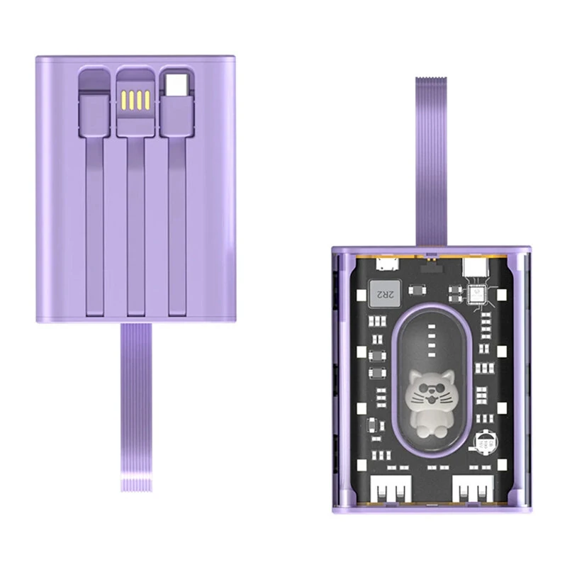 사양:제품 모델: YM-694제품 색상: 보라색, 핑크색, 흰색용량 : 20000mAh제품 코어: 115570 * 2개, 3 x 18650제품 재질: ABS+PCDC 5V 2.1ADC 5V 2.1A전력: 5W제품 크기: 약 85 * 64 * 39mm / 3.34 * 2.51 * 1.53 인치순중량: 200g특징:1. 3개의 충전 케이블 함께 제공: 충전기는 3개의 충전 케이블과 지능형 디지털 디스플레이가 있습니다. 최대 4대의 장치를 동시에 충전할 수 있습니다.2. LED 야간 조명: 미니 파워 뱅크는 부드럽고 거칠지 않은 작은 LED 야간 조명이 함께 제공됩니다.편리하게 운반할 수 있습니다. 비상 전원은 랴너드 디자인으로 쉽게 운반할 수 있습니다.내장형 USB 충전 케이블 : 모바일 전화의 전원 공급은 내장형 USB 충전 케이블이 함께 제공되어 자체 충전이 더 편리해집니다.5. 만족 보장: 우리는 모든 고객에게 최고 수준의 고객 서비스를 제공하여 즐거운 쇼핑 경험을 할 수 있도록 노력하고 있습니다. 문제, 문의 또는 도움이 필요한 경우 언제든지 직접 저희에게 연락주세요.포함된 패키지:1x YM-694 파워 뱅크