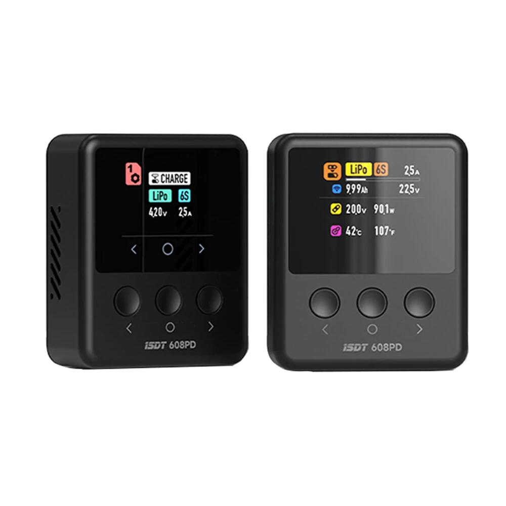 المواصفات:الحد الأقصى للتيار الوارد: DC 10A ، USB-C 5Aنطاق الجهد الوارد: DC 5-30V، USB-C 5-28Vنطاق الجهد الناتج: DC 3.0 ~ 30Vتيار الشحن: 0.5~10.0Aأقصى طاقة شحن: 240 واط / 10 أمبير، 140 واط / 5 أمبيرأقصى قدرة تفريغ: USB-C 100W/5Aنوع البطارية والسلسلة المدعومة: LiFe ، LiPo ، LiHv (4.35V ~ 4.50V) 1-6S / Pb 1-12S / NiMH 1-16Sالرصيد الحالي: 0.8A / الخلية القصوىدرجة الحرارة التشغيل: 0~40℃ درجة حرارة التخزين: -20~60تنبيه جهد البطارية غير الطبيعي: طراز الدعمإنذار لخطأ في إعداد رقم السلسلة: الدعمالأبعاد: 72.5 × 60 × 26.6 ملمالوزن: 85 جرام (±10٪)الميزات:✔✔جيل جديد من شواحن الجيب: قوة عالية مع قدرة 240 واط / 10 أمبير كحد أقصى للإخراج ومنفذ USB C بقدرة 140 واط / 5 أمبير كحد أقصى للإخراج، يلبي احتياجاتك في شحن بطاريات Lipo متعددة السيناريو.✔✔شاحن ذكي حقيقي:دعم اتصال التطبيق، إدارة البطارية ذكية بالكامل، عرض معلمات البطارية وحالة الشحن بنقرة واحدة.✔✔شاشة IPS: استهلاك طاقة منخفض ، شاشة IPS بحجم 2.4 بوصة ، تعديل سطوع تلقائي ، زاوية رؤية 178 درجة ، عرض واضح وواضح ، حتى في البيئات الصعبة أو الزوايا ، حتى في ضوء الشمس القوي✔✔نظام تبريد قوي: قناة هواء تبريد متقدمة ، تصميم نشط لقناة تبريد تدفق الهواء ، مروحة تحمل كرة المبتدئ ، مع أفنية سبيكة الألومنيوم الهندسية بدقة ووسادة توصيل حراري سيليكون فائقة التقنية ، بناء نظام تبديد حراري فعال للغاية.✔✔ شاحن عالمي: يدعم الشحن والتفريغ لمعظم البطاريات بما في ذلك: LiFe ، LiPo ، LiHv (4.35V ~ 4.50V) 1-6S/Pb 1-12S/NiMH 1-16S ، إلخ.الحزمة تشمل:1x شاحن ليبو ISDT 608PD