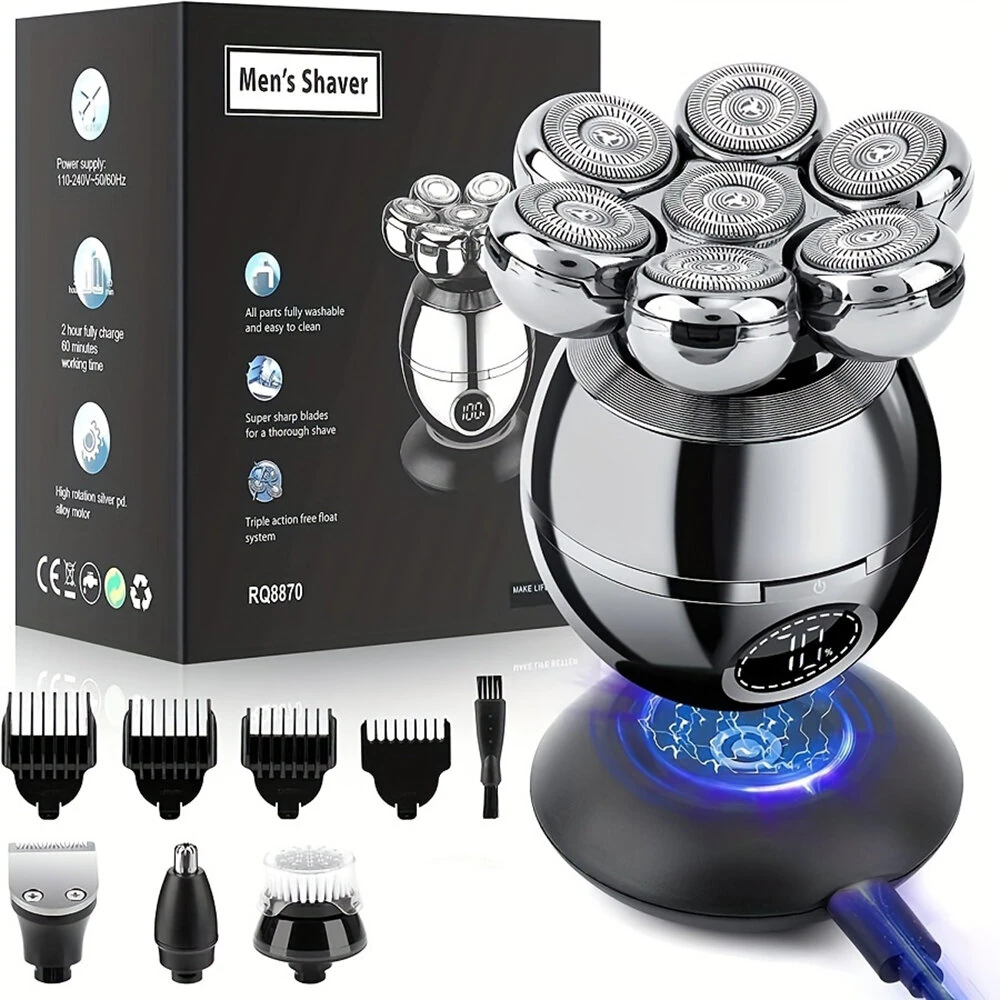 Specification Model RK 000Charging Method USB ChargingCleaning Method Full Body WashingCharging Time About 2 HoursUsage Time About 90 MinutesRated Power 5WRated Voltage 5VSize 85mmx75mmFeatures Seven Head Rotary Shaving SystemExperience super smooth and efficient shaving with seven precision engineered rotary heads Designed to provide comprehensive coverage and adapt to the contours of your face this product ensures a quick and thorough grooming session every time High Precision Sharp Blades The cutting edge blades are crafted for a clean precise cut The advanced technology reduces friction and heat ensuring a comfortable shave without pulling or tugging on the skin making it perfect for even the most sensitive skin types Full Body Washable Design No need to worry about water damage designed with IPX7 waterproof capabilities this shaver allows for easy cleaning and maintenance Simply rinse it under running water for a hygienic and hassle free experience Impressive Battery Performance Stay groomed longer with extended battery life Offering up to 90 minutes of continuous use on a full charge this shaver is your perfect travel companion No more mid shave battery failures Cordless Charging Convenience Say goodbye to tangled cords and enjoy the simplicity of cordless charging Just place the shaver on the charging base and it will be ready to use whenever you need it Package Included 1 x Electric Shaver1 x Charging Base1 x Face Brush1 x Hair Clip