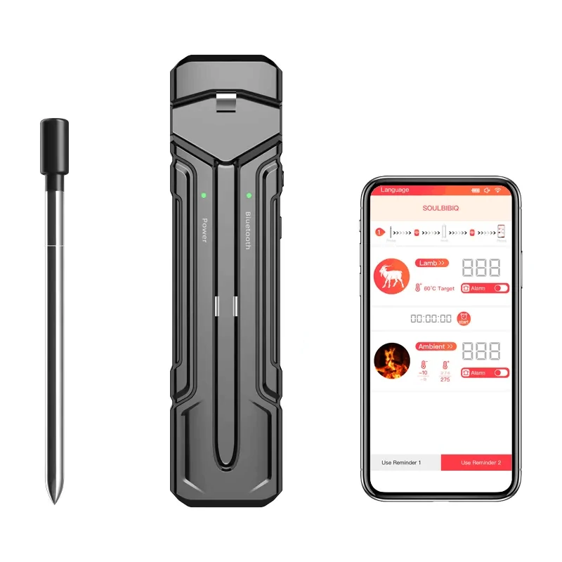 Özellikler:Uygulama adı: SOULBIBIQ, Konak boyutu: 151*35*22.5mm, Prob boyutu: 119*6mm, Konak şarj süresi: 2-3 saat, İletim mesafesi: Max300FT, Konak bataryası: 800mah, Şarj arabirimi: Type-C, Konak bekleme süresi: 120 saat, Prob bekleme süresi: 24 saat, Şarj süresi: 30 dakika (prob), Ölçüm aralığı: -4~212℉, Geriye sayım: 00:00-99:00 dakika, Ölçüm aralığı(fırın): 32~527℉, Sıcaklık anahtarı: ℃/℉, Su geçirmez: IP67【prob】, Doğruluk: ±1℃/1.8℉