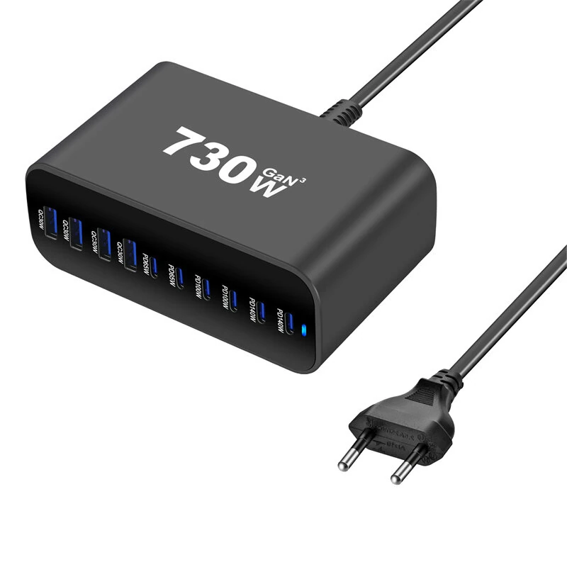 المواصفات:النموذجYMX-615-730Wلونأسودواجهة4USB-A+6USB-CإدخالAC 100-240V، 50/60Hz، 2.5A (أقصى)النتيجةUSB-C1/C2:5V3A/9V3A/12V3A/15V3A/20V5A/28V5A140W(Max)USB-C3/C4:5V3A/9V3A/12V3A/15V3A/20V5A 100W(Max)USB-C5/C6:5V3A/9V3A/12V3A/15V3A/20V3.25A 65W(Max)USB-A1/A2/A3/A4: 5V3A/9V3A/12V2.5A/20V1.5A 30W(Max)بروتوكولاتPDاكتبقابس الاتحاد الأوروبيقوة730Wالميزات: 1. خرج طاقة عالية: يوفر خرجًا إجماليًا يصل إلى 730 وات، مما يستوعب عدة أجهزة في وقت واحد، مما يضمن شحنًا فعالًا للهواتف الذكية والأجهزة اللوحية وأجهزة الكمبيوتر المحمولة.2. خيارات شحن متعددة: مزود بـ 4 منافذ USB-A و 6 منافذ USB-C، مما يوفر حلاً مرنًا للشحن لمختلف الأجهزة، بما في ذلك الدعم لكل من الاتصالات القديمة والحديثة.3. قدرة الشحن السريع: تدعم بروتوكولات قوة Delivery (PD) عبر جميع منافذ USB، مما يوفر خيارات شحن سريعة تصل إلى 140 واط لمنافذ USB-C، مما يعزز سرعة وكفاءة الشحن.4. التوافق الشامل: متوافق مع مجموعة واسعة من الأجهزة بما في ذلك الهواتف الذكية والأجهزة اللوحية وأجهزة الكمبيوتر المحمولة وغيرها من الأجهزة التي تعمل بالطاقة USB، تلبي احتياجات المستخدمين المتنوعة.5. تصميم القابس الأوروبي: يحتوي على قابس من النوع الأوروبي، مما يضمن التوافق مع معايير المقابس الأوروبية للاستخدام الواسع النطاق في المنطقة.تتضمن الحزمة: 1 × YMX-615-730W محطة شحن سطح المكتب