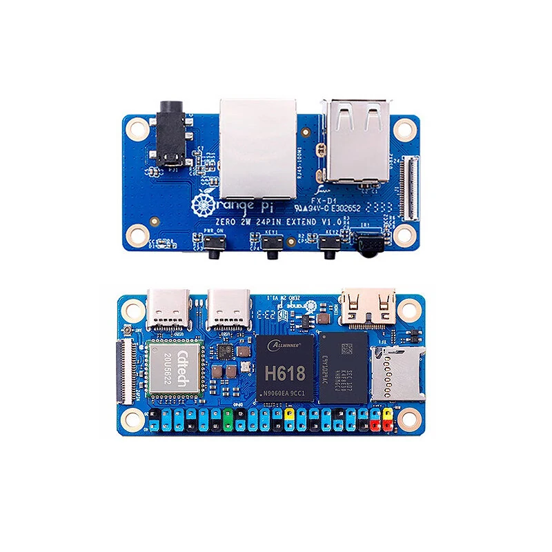 Giriş:Orange Pi Zero 2W, Allwinner H618 yüksek performanslı dört çekirdekli Cortex-A53 işlemciyle, OpenGL ES 1.0/2.0/3.2, OpenCL2.0, Vulkan 1.1 destekleyen entegre Mali G31 MP2 grafik işlemcisiyle, 1,5 GHz'ye kadar hızla birlikte geliyor. 4 GB LPDDR4 bellek spesifikasyon seçenekleri bulunur, 16 MB SPI Flash'ı destekler, Wi-Fi5, BT5.0, BLE desteğiyle birlikte gelir. 24Pin konektör ve adaptör kartı aracılığıyla USB2.0, 100M Ethernet, IR alıcısı, ses çıkışı, TV çıkışı, açma/kapama düğmesi vb. ile genişletilebilir. Ek olarak, karttaki 40Pin genişleme bağlantı noktası, anakartın işlevsel arayüzlerini daha da zenginleştirerek geliştirme potansiyelini artırır. Orange Pi Zero 2W, Zero serisinin kompakt ve zarif tasarım konseptine uygun olarak, 30mm * 65mm * 1.2mm PCB boyutuyla, televizyon kutuları, akıllı ekran görüntüleme cihazları, akıllı ev, akıllı ağ geçidi, IoT ve diğer alanlarda yaygın olarak kullanılabilir. Orange Pi Zero 2W, Android 12 TV, Debian11, Debian12, Ubuntu22.04, Ubuntu20.04, Orange Pi OS (Arch) ve diğer işletim sistemlerini destekler.Donanım Parametreleri:CPUAllwinner H618 Dört Çekirdekli Cortex-A53 İşlemci 1.5GHzGPUMali G31 Mp2-OpenGL ES 1.0/2.0/3.2, OpenCL2.0, Vulkan 1.1 desteğiRAMLPDDR4: 4GBBellekSPI Flash: 16MBWi-Fi+ BTWi-Fi5.0+BT5.0, BLEVideo çıkışı4K@60FPS destekleyen 1* Mini HDMI TX 2.0 portuUSBType-C USB2.0*2SD kart arayüzü1 * Micro SD kart arayüzüGenişletme arayüzü24Pin genişletme arabirimi: USB2.0*2, 100M Ethernet arabirimi, IR alıcı arabirimi, ses çıkışı,