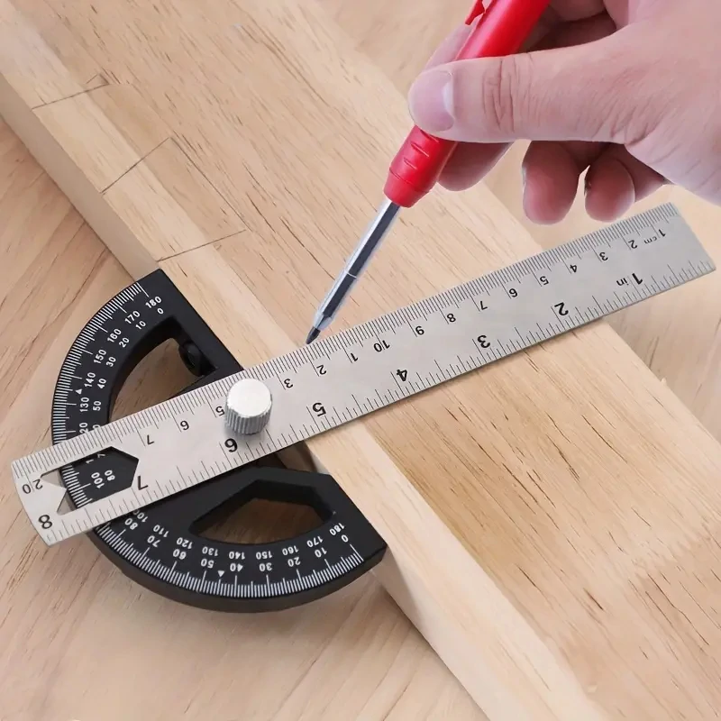 Descrizione:Righello angolare a bordo della falegnameria di misura angoloSpecificazione:Materiale: Lega di alluminio/ABS + Acciaio al carbonioQuantità: 1 pezzoTipo8 Inch12 InchDimensione203x100mm304x100mmSpessore della regola2mm2mmSpessore della piastra angolare12mm12mmFunzionalità:Goniometro multifunzionale: misurazione di angolo e righello, combinazione senza smontaggio, funzione di tenone e mortasa.Misurazione: misurazione della lunghezza, misurazione della profondità, funzione di base del righello e disegno di misurazione della profondità.Misurazione multi-angolare: Regolazione del dado di fissaggio ad angoli multipli, secondo le esigenze di misurazione, bloccare l'angolo del calibro e eseguire la misurazione in linea.Pacchetto incluso:1 x Goniometro per falegnameria