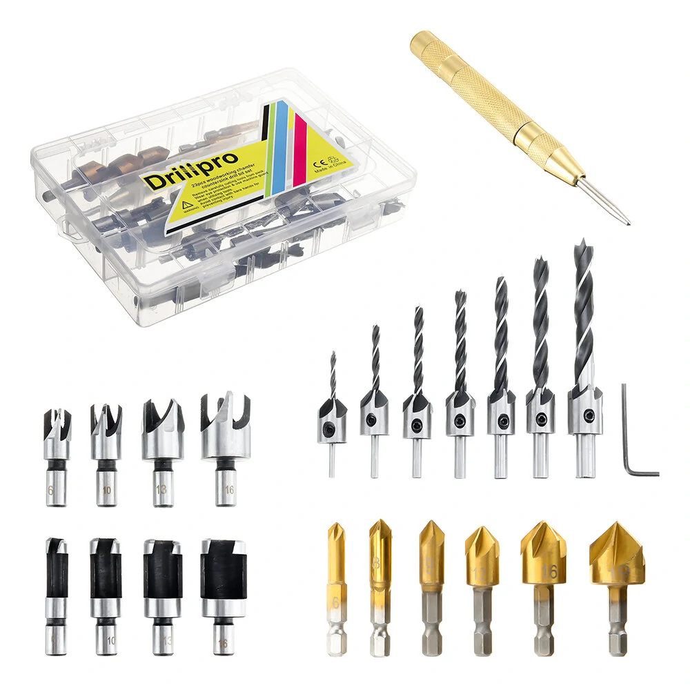 الميزات:-[مادة عالية الجودة]: مصنوع من صلب عالي الجودة وعالي السرعة ، بصلابة عالية ومقاومة للتآكل.-[تركيبة فريدة]: تم دمج مجموعة متنوعة من بتات الحفر الخشبية بأحجام متعددة في مجموعة لتختار من بينها.-[تطبيق واسع]: مناسب للمشاريع الحرفية والأعمال المنزلية والبناء العام / الهندسي. مناسب للخشب وألواح الألياف وألواح الجسيمات والخشب الرقائقي والبلاستيك والبي في سي والمعادن الناعمة. مناسب للمثاقب اليدوية ومثاقب الطاولة ومثاقب الكهربائية.-[سهل الحمل]: صندوق بلاستيكي مع تغليف بالفقاعات الهوائية ، مريح لتنظيم وحمل الأغراض ، ولا يتعرض للتلف أثناء النقل.تخصيص:7 قطع 3 نقاط دريل مثقاب:مادةصلب عالي الكربونالحجم3 مم ، 4 مم ، 5 مم ، 6 مم ، 7 مم ، 8 مم ، 10 ممبالنسبة إلىثقب ثقوب الطيارة ، تسمح شفرة الحفرة الكبيرة وخمسة حواف بالحصول على قطع أسرعوتفريغ أسهل للحطام. باستخدام مفتاح السداسي المزود بشكل L ، يمكنك بسهولةإزالة خمسة قصور في الحواف أو ضبط عمق الغلاف العكاظي وعمق الحفر.المميزاتصلابة عالية ومقاومة الاهتراءالحجمالنموذج (مم)قطر الثقب (مم)طول عمل المثقاب (مم)قطر التشفير (مم)الطول الإجمالي (مم)3mm33816524mm45016675mm56216846mm66716897mm785161038mm8801610710mm1087161206 قطع من بتات الثقب ذات الفتحات المائلة وذات 5 شقوقمادةصلب عالي السرعةالحجم6 ملم (1/4 بوصة)، 8 ملم (5/16 بوصة)، 9 ملم (3/8 بوصة)، 12 ملم (1/2 بوصة)، 16 ملم (5/8 بوصة)، 19 ملم (3/4 بوصة)رائع لـثقب ثقوب بزوايا قائمة بزوايا 90 درجة في الخشب والمعادن الناعمة واستخدام مسامير مدببةثبات. فكرة لوحات خشبية، لوحات أليافية، لوحات جسيمية، خشب مصفح، بلاستيك، لوحات الألمنيوم، لوحات الدوائر المطبوعة وأكثر.8 قطع من مثقاب قاطع الأخشاب :مادةصلب عا