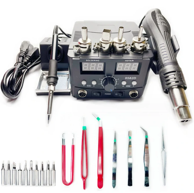 mso-bidi-font-family: 'Times New Roman'; font-size: 10.5000pt; mso-font-kerning: 1.0000pt;Fonctionnalités:mso-bidi-font-family: 'Times New Roman'; font-size: 10.5000pt; mso-font-kerning: 1.0000pt;mso-bidi-font-family: 'Times New Roman'; font-size: 10.5000pt; mso-font-kerning: 1.0000pt;1. Fonctionnalité 2 en 1 : cette station de soudage de haute qualité dispose de fonctions d'air chaud et de fer chaud, ce qui la rend parfaite pour une variété de besoins en soudure.mso-bidi-font-family: 'Times New Roman'; font-size: 10.5000pt; mso-font-kerning: 1.0000pt;2. Contrôles détaillés: il possède des doubles écrans LCD pour un contrôle précis de la température, extrêmement bénéfique dans le traitement des composants sensibles.mso-bidi-font-family: 'Times New Roman'; font-size: 10.5000pt; mso-font-kerning: 1.0000pt;3. Design intelligent : La poignée est équipée d'un interrupteur sensoriel, favorisant une expérience utilisateur plus confortable et sécurisée. Une fois la poignée posée pendant plus de 10 minutes, elle passe automatiquement en mode veille.mso-bidi-font-family: 'Times New Roman'; font-size: 10.5000pt; mso-font-kerning: 1.0000pt;4. Protection avancée: la fonction de refroidissement automatique prolonge efficacement la durée de vie du chauffe-eau et protège l'outil à air chaud, tandis que la conception ESD du fer à souder protège les composants sensibles.mso-bidi-font-family: 'Times New Roman'; font-size: 10.5000pt; mso-font-kerning: 1.0000pt;5. Capacités de multitâche : Ce pro