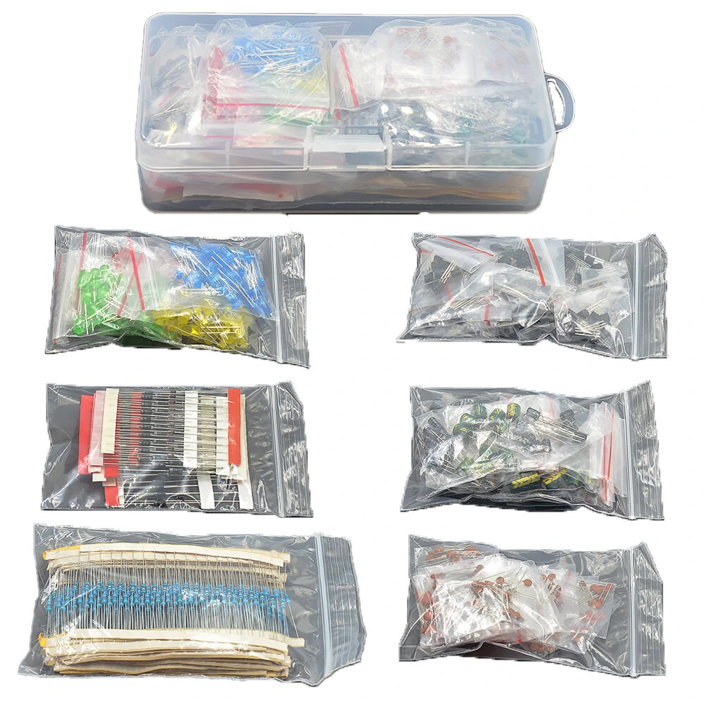 Inclui:Diodos LED":Kit sortido de 100pcs LED de 5MM:Branco 5mm 20 peças 3V-3.2V 20mAVermelho5mm20pcs1,8V-2V 20mAGreem5mm20un1.8V-2V 20mAAmarelo 5 mm 20 peças 2V-2.3V 20mAAzul5mm20un3 V-3.2V 20mA Branco 3mm 20 peças 3V-3.2V 20mAVermelho 3mm 20pcs 1.8V-2V 20mAGreem3mm20pcs1.8V-2V 20mAAmarelo3mm20unid2V-2.3V 20mAAzul 3mm 20pcs 3 V-3.2V 20mA Resistência:Kit de 600pcs de resistores de filme metálico com 30 valores 10R-1MPacote de resistores 0.25W 1%:10R 22R 47R 100R 150R 300R 220R 270R 330R 470R 510R 680R1K 2K 2.2K 3.3K 4.7K 5.1K 6.8K 10K 20K 47K 51K 68K 100K 220K 330K 470K 680K1M【Capacitor eletrolítico】:10 peças 50V 0.22μF ±20% 105°C Φ 4 x 7 mm2. 50V 0.47μF ±20% 105°C Φ 4 x 7 mm 10 unid.3. 50V1 μF ±20% 105°C Φ 4 x 7 mm10pcs4. 50V 2.2μF ±20% 105°C Φ 4 x 7 mm 10pcs5. 50V 4.7μF ±20% 105°C Φ 4 x 7 mm 10pcs6.25V10μF ±20% 105°CΦ 4 x 7 mm10un7.16V22μF ±20% 105°CΦ 4 x 7 mm10unid8. 16V 33μF ±20% 105°C Φ 4 x 7 mm 10 peças9. 16V 47μF ±20% 105°C Φ 4 x 7 mm 10pcs10. 16V 100μF ±20% 105°C Φ 5 x 7 mm 10 unidades11. 16V 220μF ±20% 105°C Φ 5 x 7 mm 10pcs12. 16V 470μF ±20% 105°C Φ 6 x 11 mm 10pc 【Capacitores cerâmicos】:1pF5pF6pF10pF 15pF 20pF 22pF30 pF 33 pF 47 pF 68 pF100pF 200pF 330pF 470pF 680pF1nF2,2nF 3,3nF 4,7nF 10nF 22nF 33nF 47nF 100nFcada 10 peças Diodo comum:25*1N4148 diodo de sinal de comutação DO-3525*1N4007 1A 1000V Diodo Retificador DO-41 10*1N5819 1A 40V DIODO SCHOTTKY DO-4110*1N5399 1.5A 1000V 4.8W Diodo Retificador DO-1510 * FR107 Diodos de recuperação rápida FR107 1A 1000V DO-4110
