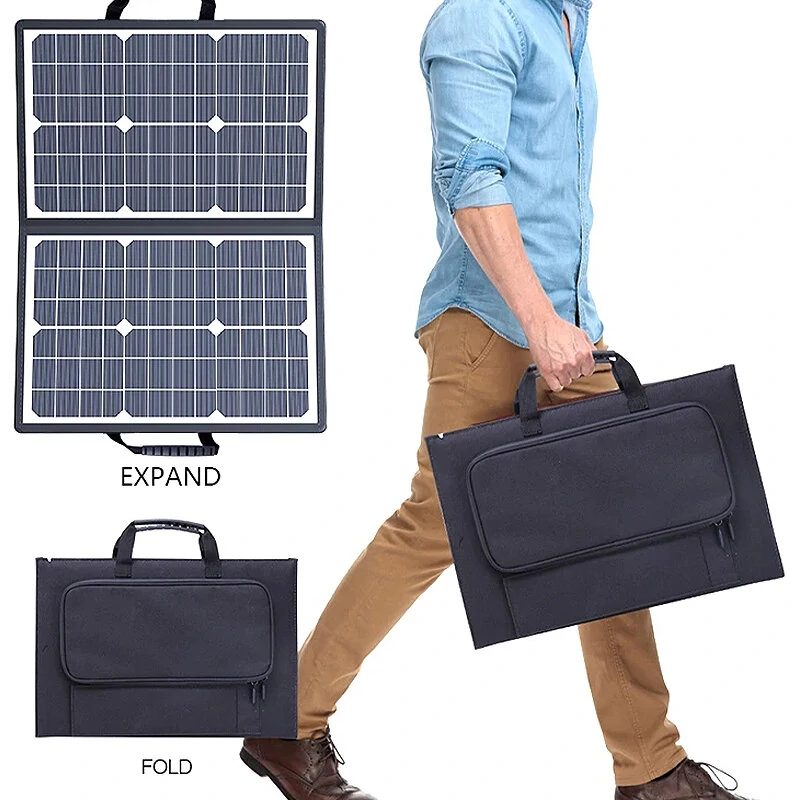 Spécifications:Matériau: silicium monocristallin PETPuissance: 40W (puissance réelle)Couleur: NoirTaille dépliée: 585mm*425mmTaille pliée : 425*285mmTaille de l'emballage: 455*300*40mmType de tranche de silicone : SunpowerSurface : GivréeNiveau d'étanchéité: IP67Fonctionnalités:Haute efficacité: le matériau de silicium cristallin unique PET assure une haute efficacité de conversion, fournissant une puissance fiable pour vos appareils.2. Design durable: Avec son niveau d'étanchéité IP67 et sa surface mate, le panneau solaire est conçu pour résister aux diverses conditions extérieures.3. Installation facile : Équipé d'un support à l'arrière, ce panneau solaire peut être facilement placé au sol.4. Ports de charge multiples: Idéal pour charger des appareils électroniques, tels que des smartphones, des tablettes et des appareils photo, en déplacement ou pendant des activités de plein air.5. Compact et portable : Le design léger et compact facilite son transport et son rangement, parfait pour les voyageurs et les amateurs de plein air.Le package comprend:1x Sac de panneau solaire1x Pince de batterie1x Câble double extrémité DC1x Adaptateur numérique