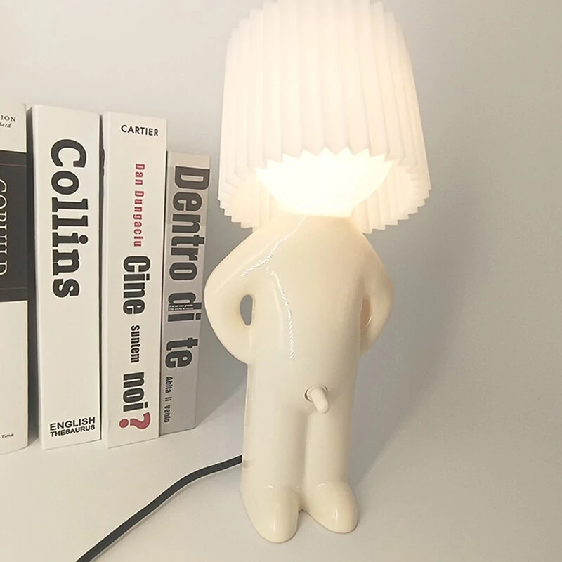 Özellikler:Malzeme: PlastikRenk: Beyaz, Kırmızı, SiyahBoyut: 12.5*29cmUygulama: Oturma Odası/Yatak Odası/Yemek Odası/Çalışma Odası/Ofis/Bar/Kafe/RestoranÖzellikler:Eşsiz tasarım: Bu Yaratıcı Utangaç Erkek Gece Lambası, iç mekan aydınlatma tutkunları için mükemmel olan eşsiz bir tasarıma sahiptir.- Vintage stil: Vintage estetiği ile bu lamba herhangi bir mekana nostalji dokunuşu ekler.- Yüksek kaliteli malzeme: Kaliteli reçineden yapılan bu lamba uzun ömürlüdür.- Ayarlama Düğmeli: Lamba, ayarlanabilir parlaklık seviyeleriyle tasarlanmıştır, böylece mükemmel ambiyansı oluşturabilirsiniz.- Kullanımı Kolay: Avrupa standartlı fişi sayesinde, bu lamba kullanımı kolaydır ve çoğu priz ile uyumludur.Paket içeriği:1 x Masa Lambası