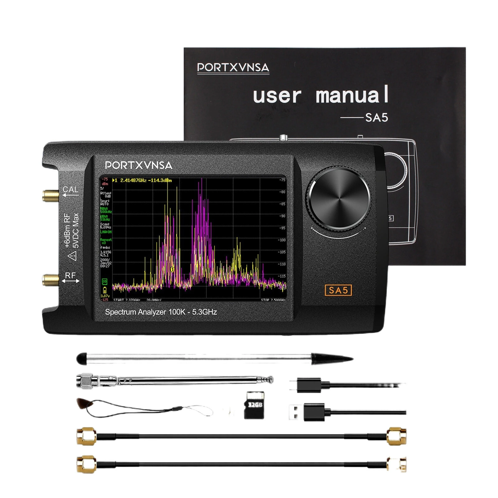 يرجى النقر هنا لتنزيل دليل التعليماتالمواصفات:نطاق تردد الإدخال: من 100 كيلوهرتز إلى 800 ميغاهيرتز (وضع عادي)، حتى 6 غيغاهرتز (وضع ULTRA)مقاومة الادخال: 50 أوم (تخفيض ≥ 10dB)تخفيف الدخل: 0dB إلى 31dB (خطوات 1dB عندما يكون LNA غير نشط)المدخلات القصوى DC: ±5V DCأقصى مستوى إدخال مطلق: +6dBm (0dB تخفيض داخلي)الحد الأقصى المطلق لقوة الإدخال القصير الأجل: +20dBm (30dB ضعف داخلي)الطاقة المدخلة القصوى المقترحة: 0dBm (الانخفاض الداخلي في الوضع التلقائي)أفضل قياس لإدخال الطاقة: أقل من -25dBmنقطة الاعتراض المدخلة (IIP3): +15dBm (0dB انخفاض داخلي)نقطة ضغط 1dB: -1dBm (تخفيض داخلي 0dB)سعة البطارية: 5000mAhشاشة العرض: 4 بوصةنوع اختياري:النوع A: بدون بطاقة MicroSD سعة 32 جيجا بايتالنوع ب: مع بطاقة MicroSD بسعة 32 جيجابايت الميزات:نطاق تردد واسع: يغطي من 100 كيلوهرتز إلى 800 ميغاهرتز في الوضع العادي، ويمتد حتى 6 غيغاهرتز في وضع ULTRA، مما يضمن تعددية الاستخدامات.تخفيض دقيق عالي: تخفيض إدخال يدوي وآلي قابل للتخصيص من 0 ديسيبل إلى 31 ديسيبل بخطوات 1 ديسيبل، مما يوفر الدقة والتحكم.حساسية محسّنة: مضخم منخفض الضوضاء 20dB مدمج مع معامل ضوضاء 5dB، مما يحسن اختبار الإشارة ووضوحها.أداء قوي للضوضاء الطورية: يتميز بضوضاء طور منخفضة تبلغ -108dB/Hz عند 100kHz ، مما يضمن سلامة الإشارة وموثوقيتها.قدرات مسح شاملة: تدعم سرعة مسح تزيد عن 1000 نقطة في الثانية مع دقة عالية على الشاشة تصل إلى 450 نقطة قياس. الحزمة تشمل:1 × SA5 آلة2 x 30cm كابلات RF RG405 SMAJB2/SMAJB21 × موصل برميل SMA-SMA1 × هوائي مزود بمقبس SMA1 x قلم اللمس1 x شريط اللمس للحامل1 x دليل المستخدم1 x كابل USBحقيبة حمل 1 x1 × بطاقة microSD بسعة 32G