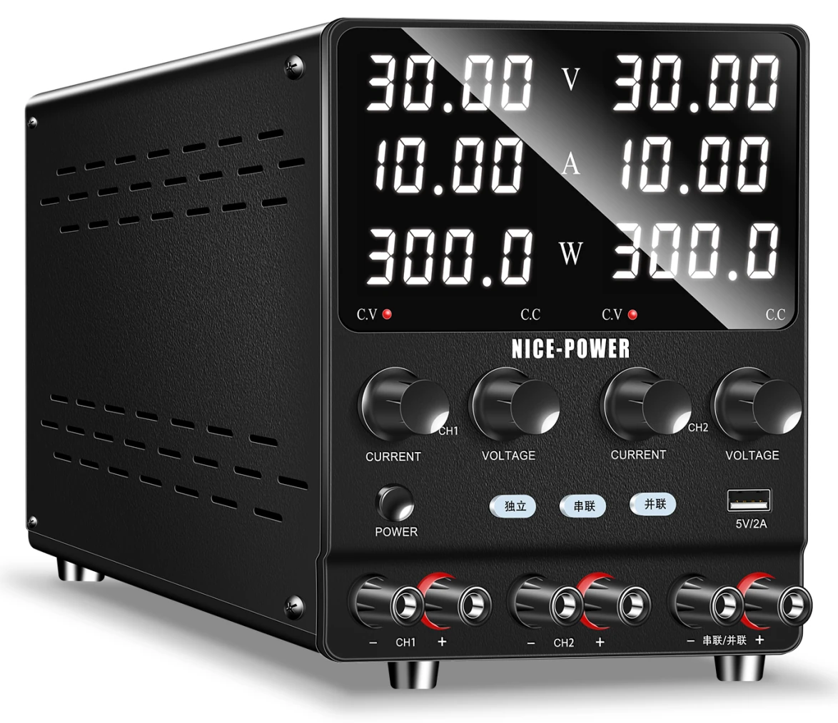 특징:1. 듀얼 채널 파워 공급이 장치는 상수 전압과 전류 사이의 자동 변환을 지원하는 독립형 듀얼 채널을 가지며 다양한 응용 분야에서 편의성을 제공합니다. 두 개의 조절 가능한 채널은 독립적으로 또는 자동으로 직렬 및 병렬로 작동할 수 있으며 마스터-슬레이브 자동 추적 및 조정 기능도 갖추고 있습니다. 2. 다중 출력 모드3가지 출력 모드로 독립, 직렬 및 병렬 모드를 지원하며, 필요에 따라 유연하고 사용자 정의 가능한 전원 공급이 가능합니다. 3. 직렬 및 병렬 연결 모드: 시리즈 연결 모드에서는 장치가 양과 음의 전력 출력을 형성하여 대칭 및 조정 가능한 양극성 전원 공급에 적합합니다. 병렬 연결 모드에서는 이중 전류 확장 출력을 가능하게 합니다. 4. 편리한 원 키 스위치: SER/PAR" 스위치를 사용하여 시리즈 및 병렬 연결 사이를 쉽게 전환할 수 있으므로 복잡한 배선과 설정이 필요하지 않습니다. 5. 다중 보호 및 고품질 재료: 고품질 부품을 사용한 충전식 배터리 전원은 과열, 과전압, 과전류 및 단락 보호와 같은 여러 가지 보호 기능을 갖추고 있습니다. 안전하고 안정적이며 효율적인 성능을 제공합니다. 사양:브랜드: KUAIQU/NICE POWER선택 모델: D305/D3010/D605/D1203입력 전압 : 220V 50Hz최대 출력 전압 : DC 0-240V최대 출력 전류: 직류 0-20A표시 정확도: 1% 1 단어 (전압 해석력 0.1V, 전류 해석력 0.1A)전압 안정성: ≤0.05% + 1mV현재 안정성: ≤0.1% + 10mA로드 안정성: CV≤0.05% + 1mV, CC≤0.05% + 10mA리플과 노이즈: CV≤10mV,CC≤20mA (RMS)전반적인 효율성: ≥80 % (전체 부하 테스트에서)작업 환경: -10 - +40 상대 습도 20% - 80% (결로 없음) SPS305-2KD 30V 5A:시리즈 연결에서 최대 60V 5A병렬 연결시 최대 30V 10A SPS3010-2KD 30V 10A:시리즈 연결에서 최대 60V 10A까지In Parallel Connection,Up To30V 20A SPS605-2KD 60V 5A:시리즈 연결에서 최대 120V 5A까지병렬 연결에서 최대 60V 10A까지 SPS1203-2KD 120V 3A:시리즈 연결에서 최대 240V 3A까지병렬 연결 시 최대 120V 6A 포함된 패키지:1 x 전원 공급 (선택한 모델)1 x 전원 코드2 x 출력 로드 코드1 x 사용자 매뉴얼