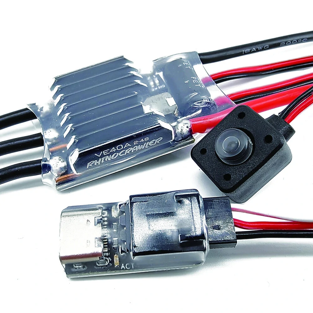 Este firmware personalizado AM32 pré-carregado inclui ESC. É otimizado para crawlers e torna o seu carro super suave e silencioso, mas também é adequado para uma variedade de carros na escala 1/10 ou menores. Possui um BEC ajustável embutido com uma corrente máxima de 3A. Além disso, o e-Switch que o acompanha evita falhas causadas por ambientes hostis.Todos os fios estão pré-soldados.Funcionalidade:Firmware personalizado AM32A partida senoidal permite que o motor funcione suavemente em velocidades ultra baixas. Frequência variável de acionamento.Proteção contra baixa voltagem, perda de aceleração e bloqueio do rotorMCU de 32 bits de alto desempenhoInterruptor E com longa vida útil e à prova d'águaEspecificações:Produto Num.: A3110Bateria: 2~4S LipoCorrente: 40A cont.BEC: máx. 3A, saída de 5.2~8.2V ajustável por interruptor DIPÀ prova d'água: ESC não suportado / comutador eletrônico suportadoFAN: não suportadoConectores: não incluídosFios: bateria 16AWGx100mm, saída 16AWGx100mm, sinal 200mm e comutador eletrônico 120mmDimensões: 39x26x11mm (sem fios)Peso: 34gPacote incluído:1x RhinoESC AM32 40A ESC para Crawler