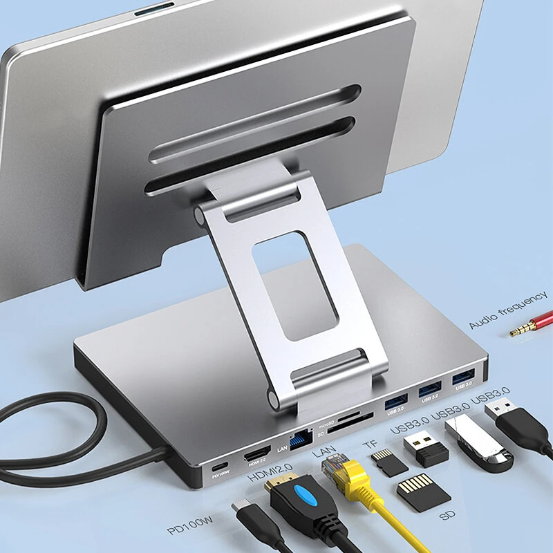 Özellikler:Ürün Tipi9 IN 1 Tip-C Docking İstasyonuRenkGriMalzemeAlüminyum alaşımlıGiriş ArayüzüUSB3.0*3(5Gbps)PD3.0 (Maksimum 100W)HDMI-Uyumlu 2.0 (4K/60Hz)RJ45(1000M) SD/TF 2.0 (Eş zamanlı okuma desteklenmez) 3.5 mm SesÇıkış ArabirimiTip-CAktarma Hızı5GbpsBoyut143*100*26mm Özellikler: 1. Çok Yönlü Bağlantı: Docking istasyonu,yüksek hızlı veri transferi için USB3.0*3 (5Gbps),hızlı şarj için PD3.0 (100W Max),yüksek çözünürlüklü video çıkışı için HDMI-Uyumlu 2.0 (4K/60Hz),stabil Ethernet bağlantısı için RJ45 (1000M),hafıza kartı uyumluluğu için SD/TF 2.0 (Aynı Anda Okuma Desteklenmez) ve ses çıkışı için 3.5mm ses ile donatılmıştır.2. Yüksek Hızlı Veri Transferi: 5Gbps'lik bir iletim hızı sunan USB3.0 arayüzleri ile dosyaları hızlı ve verimli bir şekilde transfer edebilirsiniz.3. 4K Video Çıkışı: HDMI-Uyumlu 2.0 arayüzü,60Hz'de 4K çözünürlüğü destekleyerek canlı ve etkileyici bir görsel deneyim sunar.4. Stabil Ethernet Bağlantısı: RJ45 arayüzü,hızlı ve stabil internet erişimi için güvenilir bir Gigabit Ethernet bağlantısı sağlar.5. Kompakt ve Şık Tasarım: Dayanıklı alüminyum alaşımından üretilen docking istasyonu,herhangi bir çalışma alanını tamamlayan şık,gri bir renge sahiptir. Kompakt boyutu,kolay taşınabilirlik sağlar.Paket İçeriği:1 adet 9'lu Tip-C Bağlantı İstasyonu1x USB Kablosu