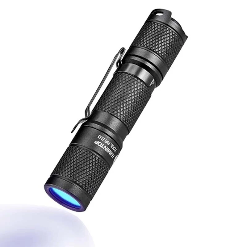 المواصفات والميزات:LED: LED SST-10-UV بطول موجي 365 نانومتر مع عمر يصل إلى 50000 ساعة2. مدعوم ببطارية ليثيوم أيون قابلة للشحن من النوع 14500 بسعة 1 قطعة لا تقترح استخدم بطارية AA)(البطارية غير مشمولة)3. مستويان إخراج مع الذاكرة4. عامل ترشيح الأشعة فوق البنفسجية الأسود ZWB2 لتنقية الضوء فوق البنفسجي5. 2 طرق لاختيار الإخراج. زر الذيل الانتقائي أو لف رأس الجهاز.الحجم: 92 * 18 مم. N.W: 24 جرام (بدون بطارية)مصنوع من سبيكة الألمنيوم عالية الجودة للطائرات.تصنيف IP68 مقاوم للغبار ومقاوم للماء. قابل للغمر حتى عمق 2 أمتار.عملية:مشغل/إيقاف: قم بالضغط بالكامل على مفتاح التشغيل الموجود في الذيل أو قم بلف رأس الضوء لتشغيل/إيقاف التشغيل.اختيار الناتج: عند تشغيل الضوء ، اضغط برفق على الزر أو قم بلف رأس الضوء لتغيير النتائج.شملت الحزمة: 1 x Lumintop Tool AA UV 2.0 مصباح فوق بنفسجي