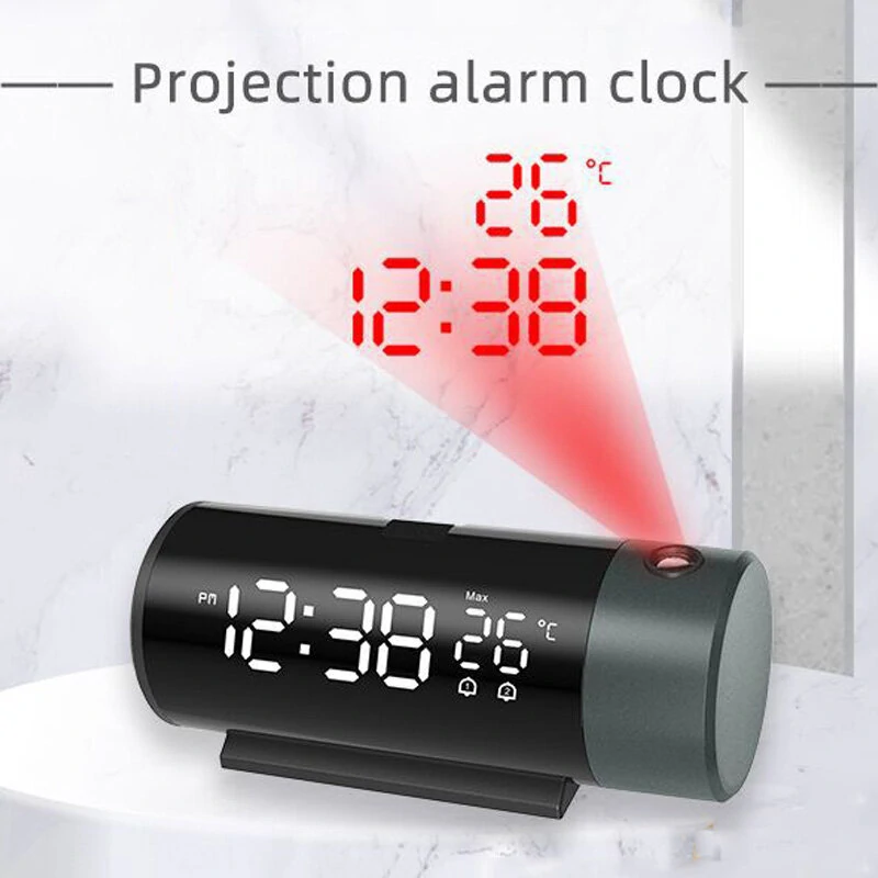 특징:1. LED 스크린은 시간과 온도를 명확하게 표시하며 동시에 벽에 시간 + 온도 투영을 지원합니다.2. 매일 듀얼 알람 기능, 알람 스위치는 다이얼 스위치이며 동작이 매우 간단합니다.3. 스누즈 기능 (스누즈 시간 설정 가능: 5~60 분)4. 최대 및 최소 온도를 확인할 수 있습니다.5. 온도 감지 범위: -9~+39°C (16~102°F)6. 온도 표시 단위 선택: °C 및 °F7. 180도 회전 가능한 고정도 빨간색 프로젝션으로 유효 거리는 5m 입니다.8. LED 디스플레이 밝기 레벨: 4 밝기 레벨9. 주변 밝기에 따라 자동으로 조명을 감지하여 화면 밝기 조절 기능10. 내장형 CR2032 버튼형 배터리(절연)는 메모리 기능이 있습니다. 외부 전원이 차단된 후에도 제품 설정은 변경되지 않고 정상적으로 기능하며, 정전 후에 알람 시계를 다시 설정할 필요가 없습니다.11. 뒷면에는 휴대 전화 등 다른 전자 기기를 충전하기 위한 USB 출력 포트가 있습니다. 사양:패키지 크기: 16*7.4*9.5cm제품 크기: 15*5.5*6cm제품 재질: ABS 무게: 약 260g 포함된 패키지:1 * 프로젝션 알람 시계1 * USB 케이블1 * CR2032 버튼 전지1 * 사용자 매뉴얼