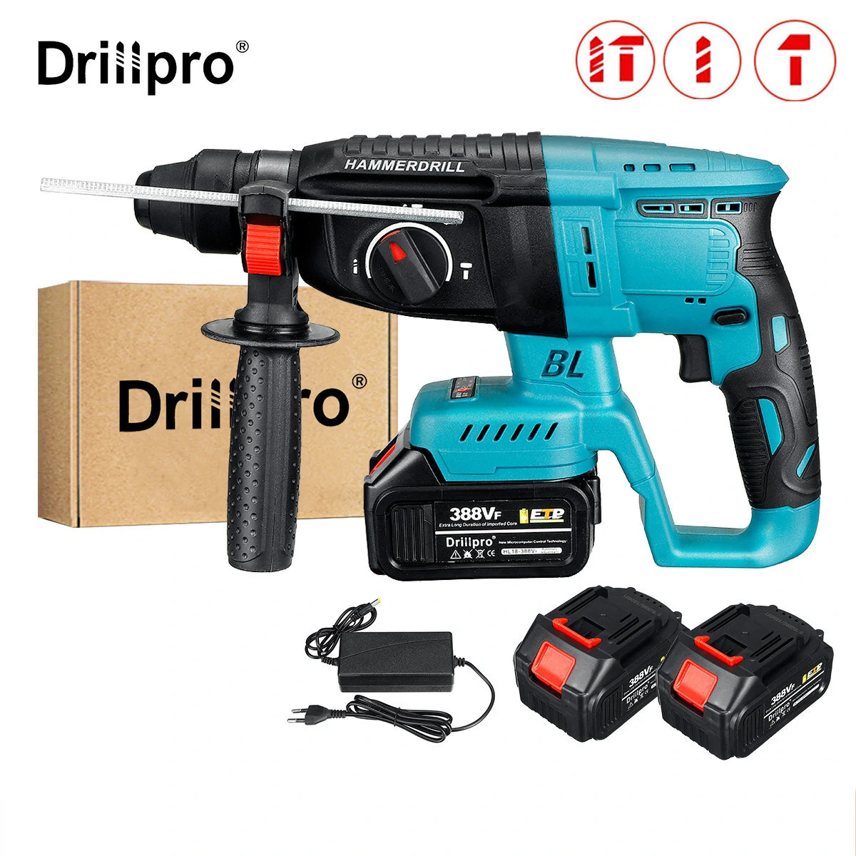 사양이름: 브러시리스 전기 망치색상:파랑+검정긍정적 반전: 예모터 : 브러시리스 모터콜레트 장치: SDS최대 드릴링 직경: 26mm배터리: 388VF 1.5Ah 배터리(1/2 배터리)적용 가능한 드릴 비트 : 라운드 핸들, 2 개의 구멍 및 2 개의 슬롯작업 재료: 화강암/지지벽/경량 콘크리트/벽돌 벽 등특징-대면적 접촉 디자인, 안정적인 전류 출력.고무로 봉인된 회로 기판, 방진, 방수 및 내충격성.-리튬 배터리, 더 긴 배터리 수명, 편리함 (1/2 배터리)망치 / 드릴 / 전기 픽 기능을 자유롭게 전환할 수 있습니다.다중 기능전기 드릴 모드강력한 드릴 (드릴 척과 일치해야 함)전기 망치 모드AC 전동 해머보다 높은 드릴링 효율함수 전환평면 철삭을 설치하고 방향을 조정하십시오전기 픽 모드수도와 전기 구멍, 편리한주의수동 측정으로 인한 약간의 오차가 있을 수 있으므로 양해 바랍니다. 입찰하기 전에 신경 쓰지 않으시기 바랍니다.2. 색상은 디스플레이 차이로 인해 다를 수 있습니다. 이해해 주세요.패키지 포함 내용1 x 브러시리스 전동 해머1/2 x 배터리1 개 충전기
