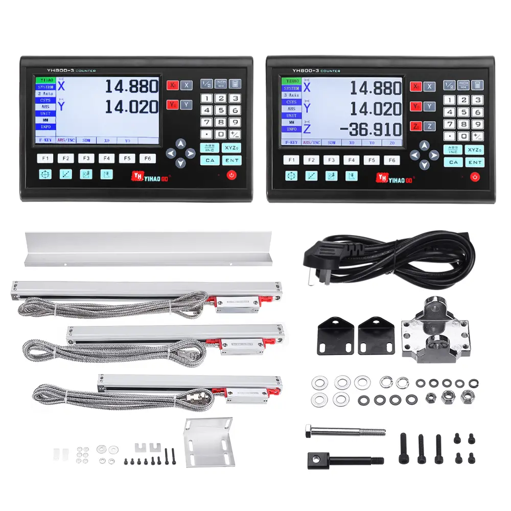 Description:YIHAOGD YH Affichage numérique à lecture CNC à quadrillage 2/3 axes / Échelle linéaire électronique TTL 5μ 50-1000mm pour tour Spécification:Système d'affichage des paramètres DroModel: 2 Axis/3 AxisPlage de tension: AC 100V~240V/50HZ~60HZAffichage numérique du signal acceptable: TTLFiche: DB9Résolution acceptable: 10μm, 5μm, 2μm, 1μm, 0.5μm.Taille:La longueur optionnelle mesure la longueur effectiveLongueur totale = longueur effective de mesure + 142 mmFonctions du système d'affichage numérique Dro1:Effacement du zéro2:Réinitialiser3: mode mm/pouce4: conversion de coordonnées ABS/INC5: 200 ensembles de sous-données6:Éteindre la mémoire;7:Centre de 1/28: Compensation d'erreur de revêtement9:Mode veille10:Effacer 200 ensembles de données Sdm;11: mode ABS/INC12: Calculatrice13: Perçage de la circonférence14: Forage de ligne oblique15: Usinage de plan incliné16: Usinage d'arc circulaire17: Fonction de tour (match)18: Traitement progressif du lumen rectangulaire19:Filtrage numérique20:Filtrage des vibrations21: R / Fonction de diamètre22: Fonction de tourParamètres de Règle Linéaire/Encodeur Linéaire/Capteur Linéaire/Echelles TTL 5U1. Voyage (mesure) longueur: 0-1000mm / 0-40 pouces2. Longueur totale: Longueur de voyage + 142 mm (0-1142 mm)3. Prise: DB94. Résolution : 0,005 mm (5 μ)5. Tension d'entrée: 5V6. Pas de grille: 0.02mm (50LP/min)Longueur du câble : 3 mètres8. Taille normale: environ 22*349. Classe de protection: IP5410. Signal: TTLLe Signal du Règle Linéaire