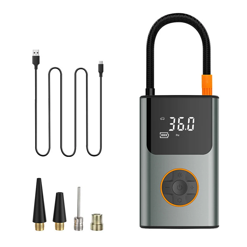 المواصفات:النموذج: ضاغط هوائي للسيارات الرقمي اللاسلكيمصدر الطاقة: بطارية قابلة لإعادة الشحننطاق الضغط: 0-150 PSIالجهد: 7.4Vالطاقة: 50 واطسعة البطارية: 2000mAh*2ملحقات: فوهة قابلة للنفخ * 4وظائف المنتج: تضخم / إضاءة / إيقاف التضخم التلقائيالميزات:لاسلكي ومحمول: لا حاجة لأي أسلاك أو كابلات، يمكنك حملها معك بسهولة أينما ذهبت.2. عرض رقمي: يعرض شاشة LCD واضحة وسهلة القراءة ضغط الإطارات في الوقت الحقيقي للاستخدام الدقيق.3. البطارية القابلة لإعادة الشحن: البطارية المدمجة تسمح بالتشغيل السلكي المريح.4. نفخ سريع: قم بنفخ إطاراتك بسرعة وكفاءة، مما يوفر لك الوقت والجهد.5. استخدامات متعددة: مناسبة لنفخ إطارات السيارات والدراجات والدراجات النارية والكرات الرياضية وأكثر.الحزمة تشمل:1 مضخة كهربائية لا سلكية لنفخ السيارات الرقمية1 X كبل شحن USB3 X فوهة الغاز1 X إبرة الغاز1 X دليل المستخدم