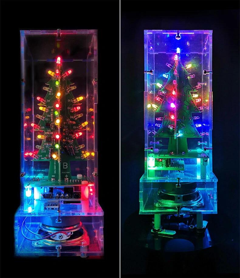 사양:제품명: 블루투스 앱으로 제어되는 크리스마스 트리 DIY 전자 키트 (직선/곡선잎, 삼색/다채로운 버전)작동 전압: 5V, 1A (USB 전원)전원 공급 옵션 : 모바일 충전기, 컴퓨터, 파워 뱅크, 5V, 1A 전원 공급원회로 기판 재료: 양면 1.6mm RF-4 기판외장재료: 아크릴잎의 형태: 직선 잎 또는 곡선 잎LED 라이트 크기: 3mmLED 라이트 색상: 삼색 또는 멀티컬러 (패키지에 따라 다름)주의: 이것은 조립되지 않은 상태이며, 스스로 조립해야 합니다메뉴얼: 여기를 클릭하여 열기특징:1. 블루투스 앱 제어: 이 업그레이드된 DIY 전자 키트는 블루투스 연결 기능과 전용 모바일 앱을 갖추고 있어 크리스마스 트리의 조명과 회전을 편리하게 제어하고 사용자 정의할 수 있으며, 휴일 장식에 현대적인 감각을 더합니다.2. USB 전원 편의성: 이 키트는 사용자 친화적인 5V, 1A USB 전원 공급을 사용하며, 모바일 충전기, 컴퓨터, 파워 뱅크 및 다양한 5V, 1A 전원 소스와 호환되어 쉽게 설정하고 사용할 수 있습니다.3. 내구성있는 구조: 회로 기판은 고품질의 이중측면 1.6mm RF-4 재질로 만들어져 안정성과 신뢰성을 보장합니다. 캐비닛은 내구성있는 아크릴로 만들어졌습니다.4. 다양한 잎 모양 선택: 휴일 장식을 위해 직선 잎 또는 곡선 잎 디자인 중에서 선택할 수 있으며, 크리스마스 트리의 외관을 유연하게 할 수 있습니다.5. 생생한 LED 조명 : 키트에는 빨강, 노랑, 녹색 또는 다양한 색상으로 제공되는 3mm LED 조명이 포함되어 있어 휴일 장식과 어울리는 색상 계획을 선택할 수 있습니다.포함된 패키지:1x 크리스마스 트리 DIY 전자 키트