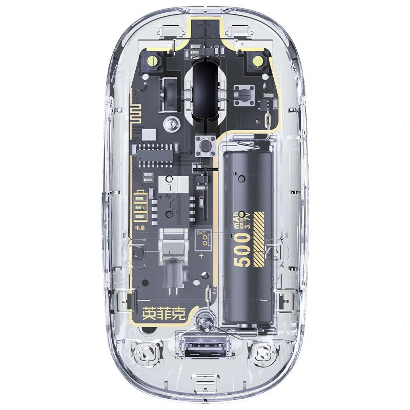 المواصفات:علامة تجاريةإنفيكالنموذجX5اتصال2.4G لاسلكيلونشفافأزرار4 Keysالحجم (الطول × العرض × الارتفاع)112*57.5*27mmالوزن66.6gبطارية500mAhتنظيم DPI800/1000/1200/1600DPI قابل للتعديلنظام التتبعبصريعلم الإرتجاءالدعمدعم نظام التشغيلويندوز إكس بي وأعلىالميزات: 1. تصميم شفاف: يتميز إنفيك X5 بتصميم شفاف أنيق يضيف جاذبية جمالية فريدة لإعداد مكتبك.2. إعدادات دقة متعددة المستويات: يقدم إعدادات دقة قابلة للتعديل (800/1000/1200/1600 نقطة في البوصة)، مما يسمح بمراقبة دقيقة ودقة.3. التصميم الانسيابي: تم تصميم هذا الماوس بشكل يوفر الراحة القصوى ويقلل من إجهاد المعصم أثناء فترات الاستخدام الطويلة.4. اتصال لاسلكي 2.4 جيجا هرتز: تستخدم X5 اتصالًا لاسلكيًا 2.4 جيجا هرتز يوفر أداءً مستقرًا وخاليًا من التأخير.5. بطارية طويلة الأمد: بفضل بطارية سعتها 500 مللي أمبير في الساعة، يضمن هذا الماوس استخدام متواصل لفترة طويلة.يشمل الحزمة: 1 × إنفيك X5 2.4G ماوس لاسلكي 1 x كابل شحن1 × صندوق الحزمة