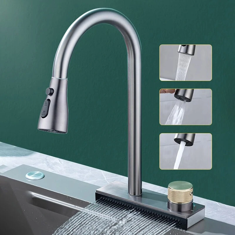 Spécifications:Type d'installation: Montage sur le pontNombre de poignées: une seule poignéeNombre de trous pour l'installation: un seul trou Type de pulvérisation: ExtractibleMode: Mode de diffusion en continu, Mode de pulvérisation, Mode de double lame d'aqua Rotatif ou non: OuiCaractéristique: Froid et ChaudMatériau: Acier inoxydable 304Type de finition : Brossé Montage : VerticalMatériau du produit : acier inoxydable 304 Type de tuyau: G1/2 pouceTaille appropriée du trou de montage : 32-44mmRemarque : La taille du tuyau est de 1/2", ce qui convient à la plupart des pays, à l'exception des États-Unis (9/16") et d'Israël (3/8"). Veuillez confirmer la taille précise du tuyau avant de passer commande.Forfait inclus:1 * Robinet de cuisine