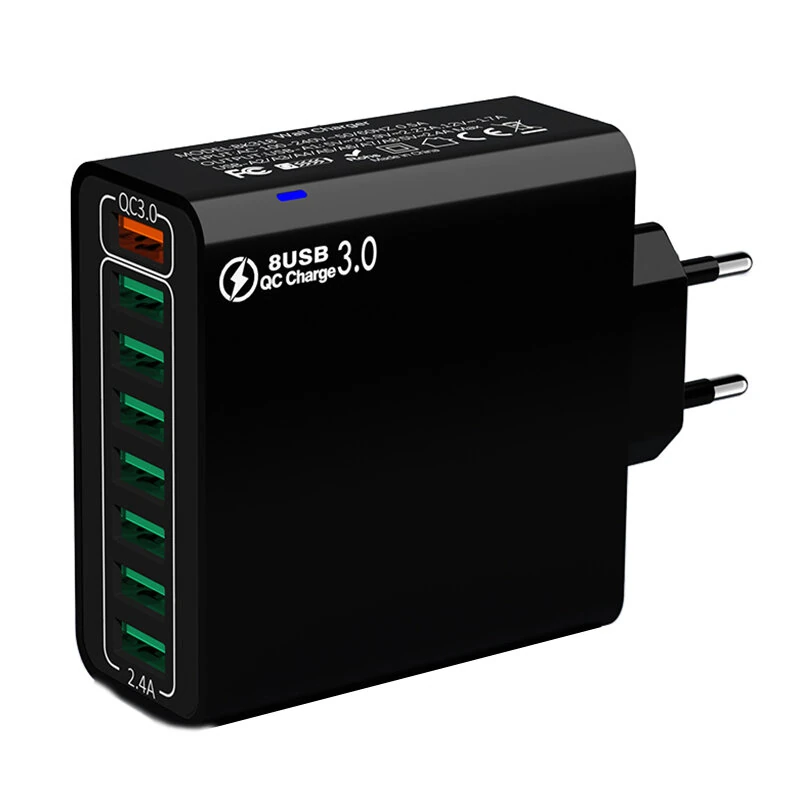 المواصفات:النموذجBK318لونأسود/أبيض/أصفرمادةحاسوب غير قابل للاحتراقالحجم7.2*3*10.5cm(EU) / 7.2*3*9.7cm(US)واجهة8USB-AإدخالAC100-240V~50/60Hz 0.5A الحد الأقصىالنتيجةالمخرج USB-A1: 5V/3A 9V/2.22A 12V/1.7Aمخرج USB-A2/A3/A4/A5/A6/A7/A8: 5V/2.4AبروتوكولاتQC3.0 4.0+ PPS AFC FCP SCP SSCPاكتبمقبس الاتحاد الأوروبي/مقبس الولايات المتحدةقوة65Wالميزات: 1. مخرجات متعددة: تأتي شاحن BK318 مزودة بـ 8 منافذ USB-A، مما يتيح لك شحن عدة أجهزة في نفس الوقت.2. الشحن السريع: يدعم USB-A1 الشحن السريع بإخراج قدره 5V/3A، 9V/2.22A، و12V/1.7A، بينما تقدم بقية منافذ USB-A مخرجات قدرها 5V/2.4A.3. توافق واسع: مع دعم بروتوكولات مثل QC3.0 و 4.0+ و PPS و AFC و FCP و SCP و SSCP، فإن هذه الشاحن متوافق مع مجموعة واسعة من الأجهزة ويمكن أن يتكيف مع احتياجات الشحن الخاصة بها.4. تصميم مضغوط ومقاوم للحريق: مصنوع من مادة PC المقاومة للحريق، فإن BK318 ليس فقط طويل الأمد ولكنه أيضًا آمن للاستخدام. حجمه المضغوط يجعل من السهل حمله وتخزينه.5. خيارات متعددة للمقابس: يأتي الشاحن مع خيارين للمقابس - الاتحاد الأوروبي والولايات المتحدة - مما يسمح لك باستخدامه في دول أو مناطق مختلفة.يشمل الحزمة:1x BK318 شاحن