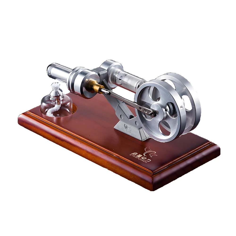 Especificações:Marca: STARPOWERModelo: QX-SL-01 / QX-SL-01-MNome do produto: Modelo de motor Stirling a ar quenteVersão: Base de madeira / Base de metal (opcional)Cor: Como mostradoTamanho do produto: 180*90*90mmPeso do produto: Base de madeira: 310g; Base de metal: 380gTamanho da embalagem: 200*110*115 mmPeso da embalagem: 0,35 kgEtapas de início: 1. Coloque o modelo em uma superfície horizontal; adicione um pouco de álcool na lâmpada de álcool.2. Acenda a lâmpada de álcool; gire o volante manualmente até que o volante possa girar automaticamente.3. No processo de partida,mova a lâmpada de álcool para permitir que o modelo funcione da melhor forma.4. A altura do pavio da lâmpada de álcool não deve ser inferior a 15 mm,e você pode ajustar a altura do pavio para alcançar o melhor funcionamento.Questões a serem observadas: 1. Ao aquecer,não toque com as mãos o cilindro e a parte de aquecimento. 2. Evite que outras substâncias líquidas entrem em contato com os cilindros em caso de ferrugem; apague a lâmpada de álcool após terminar a demonstração.Planos de manutenção (se o modelo não estiver funcionando muito bem)1. Verifique se há álcool suficiente na lâmpada de álcool.2. Verifique se os parafusos das rodas pequenas e grandes estão folgados ou não.3. Temperatura muito alta no cilindro de ar devido ao aquecimento contínuo por um período de tempo afetará o desempenho do produto.4. Verifique a posição da válvula: a posição mais alta da válvula de aba (2) é cobrir um quarto da porta