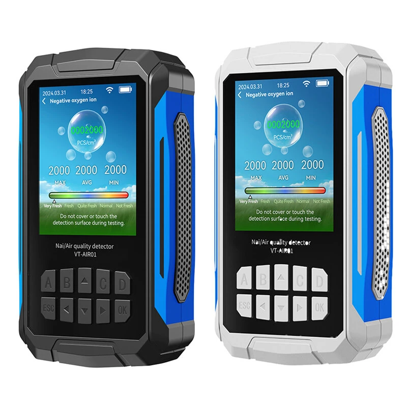 사양:색상: 검정/흰색모델: VT-AIR01화면 크기: 2.8인치배터리: 2000mAh아이템 크기: 1256735mm충전 방법: 5V Type-C 특징:포괄적인 감지: NAI(부정 공기 산소 이온)를 최대 99999999 PCS/cm³까지 측정하며,온도 범위는 0-70°C,습도는 0-99% RH입니다.오염물질 모니터링: 0-9.999 mg/m³ 범위에서 HCHO(포름알데히드),0-9.999 mg/m³ 범위에서 TVOC,0-999 µg/m³ 범위에서 PM2.5 및 PM10을 감지할 수 있습니다.가스 감지: 1000 ppm까지의 CO 수치와 0-5000 ppm의 CO2 수치를 모니터링하여 유해 가스로부터 안전을 보장합니다.사용자 친화적인 디스플레이: 실시간 데이터용 2.8인치 화면을 갖추고 있어 공기 품질 지표에 대한 명확하고 포괄적인 뷰를 제공합니다.WIFI 기능: Wi-Fi가 장착된 모바일 장치에 연결하여 데이터를 쉽게 볼 수 있어 편리함과 사용성을 향상시킵니다. 포함된 패키지:1 x 공기 질 감지기 (원하는 색상)1 x USB Type-C 케이블1 x 사용자 매뉴얼1 x 휴대용 가방mso-bidi-font-family:'Times New Roman';font-size:10.5000pt;mso-font-kerning:1.0000pt;mso-bidi-font-family:'Times New Roman';font-size:10.5000pt;mso-font-kerning:1.0000pt;