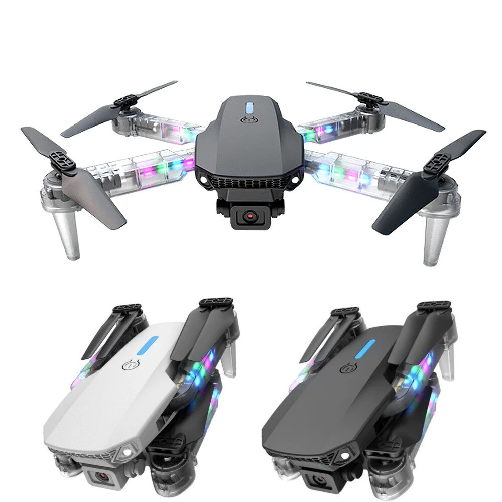 YLR/C E88D الواي فاي FPV مع كاميرا HD ثنائية العدسات ستائر إضاءة تدفق بصري موضع LED لوني قابل للطي للطائرة بدون طيار RC كوادكوبتر جاهز للاستخدامالمواصفات:اسم العلامة التجارية: YLR/Cرقم العنصر: E88Dاللون: أسود، رمادي (اختياري)المادة: البلاستيك والمعدن والمكونات الإلكترونيةالتردد: 2.4Gالقناة: 4CHالدوار: 6 محاورمحرك: محرك قلبي برأس برش 716بطارية الطائرة بالرباعي: 3.7 فولت 1800 مللي أمبير ليبو (مضمنة)وقت الطيران: 8-10 دقائقوقت الشحن: 60-80 دقيقة (المقبض الأيسر للقبضة)بطارية التحكم عن بعد: 3 * 1.5V بطارية AA (غير مدرج)المسافة بالتحكم عن بعد: 100مFPV: 2.4G واي فايمسافة FPV: 50-70 مترالكاميرا: 480Pالعدسة: تعديل يدوي بزاوية 90 درجةحجم الرباعي: 130 × 70 × 55 مم (قابل للطي) ، 250 × 250 × 55 مم (غير قابل للطي)الوزن عند الإقلاع: 120 جرام (البطارية 19 جرام)حجم الحزمة: 21 × 6.5 × 17 سموزن الحزمة: 300 جرامالميزات:- ذراعات قابلة للطي ، حجم صغير ، سهل الحمل.- مع ذراع شفاف يضيء. أكثر تكنولوجياً ، مع إضاءة ملونة مجتمعة ، تجعل الليل أكثر إثارة.- تحديد موقع تدفق الضوء البصري. يعزز الاستقرار ويوفر دقة عالية في التحوم.- يمكن الاتصال بوظيفة الواي فاي عبر تطبيق APP، نظام APK لالتقاط الصور والفيديو ونقل الصور بشكل فوري من خلال كاميرا الهاتف.- ببطارية سعة 1800 مللي أمبير ، وقت الطيران يصل إلى 10 دقائق.- ارسم مسار الطيران على الشاشة ، وسيتحلق الطائرة بدون طيار بشكل ذاتي على طول المسار الذي حددته.- رحلة نقطة الطريق: يمكنك تخطيط مسارك الطيران عن طريق رسم النقاط على الخريطة المضمنة في التطبيق ، وتسجيل المناظر الطبيعية الجميلة على طول المسار.- نقطة الاهتمام: حدد مبنىًا أو موقعًا وانقر فوقه على خريطة التطبيق