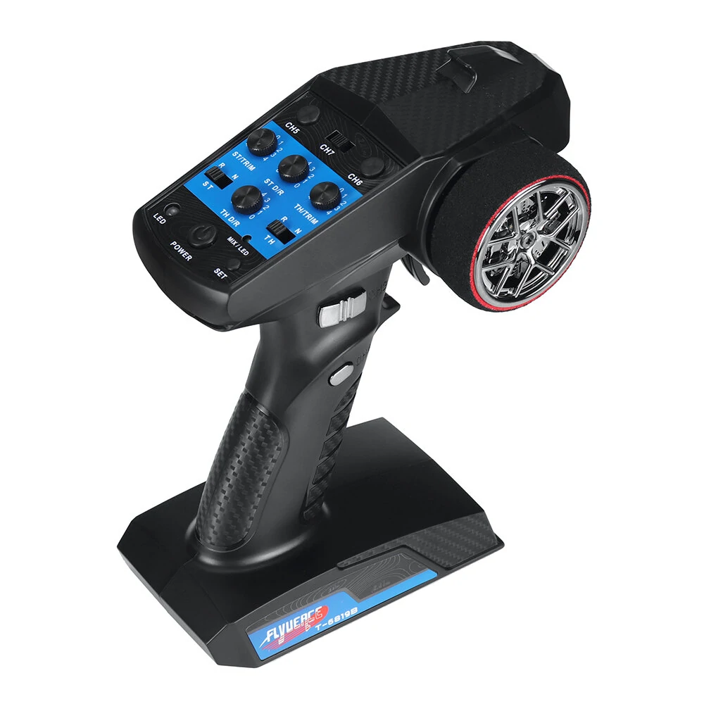 FLYUEACE T-6819B/T-6819C Trasmettitore 2.4GHz 7CH con ricevitore di gruppo Light RX-G7 per auto RC, barche e carri armatiDescrizione:Marca: FLYUEACEModello: T-6819B/T-6819C (Opzionale)Specifiche del trasmettitore T-6819B:Modello: T-6819BCanali: 7CHApplicazioni: Automobili/Imbarcazioni/Carri armati radiocomandatiTensione di lavoro: 4.2-6VAllarme di bassa tensione: R F: 2.4-2.483GHzPotenza RF: Certificati: CE/FCCDimensioni: 143*90*192mmPeso: 226gSpecifiche del trasmettitore T-6819C:Modello: T-6819CCanali: 7CHApplicazioni: Automobili/Imbarcazioni/Carri armati radiocomandatiTensione di lavoro: 4.2-6VAllarme di bassa tensione: R F: 2.4-2.483GHzPotenza RF: Certificati: CE/FCCDimensioni: 143*90*192mmPeso: 220gSpecifiche del ricevitore RX-G7:Modello: RX-G7Potenza: 4.2-9VCanali: 7 CHFrequenza: 2,4-2,483 GHzSlot luminosi: SìWinch: SìProtezione dall'inversione: SìCertificati: CE/FCCDimensioni: 35.6*23.8*134mmPeso: 8,6gCaratteristiche e funzioni:* Trasmissione a 2,4 GHz, che permette agli operatori di giocare contemporaneamente senza dover affrontare interferenze del segnale.Impostazione del limite di attivazione proporzionale, facile per i principianti per praticare.* Funzione di sicurezza programmabile in caso di guasto.compatibile con servi ad alta tensioneControllo della miscelazione multicanale ottenibile .Ricevitore con fessure per luci multifunzionali e fessura per verricello.Indicazione di bassa tensione della batteria: Il LED lampeggia lentamente quando la tensione della batteri