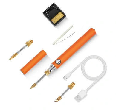 Spécifications: Material: High-quality metal Power: USB rechargeable lithium battery Adjustable temperature: Three gears Portability: Lightweight and easy to carry Safety: Comes with a cover to prevent accidentsFonctionnalités: Portable: Convenient for on-the-go use Wireless: No need for messy cords or outlets Adjustable temperature: Suitable for various soldering needs DIY-friendly: Perfect for DIY projects and repairs Versatile: Can be used for soldering, coding, and brandingLe package comprend: 1 x Portable wireless soldering iron 1 x USB charging cable 1 x Protective coverPhotos détaillées: