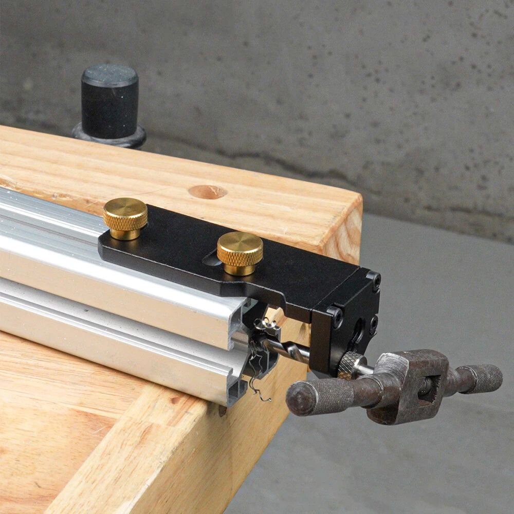Especificações:- Nome do produto: Assistente de roscagem de perfil de alumínio- Escopo aplicável: perfis de alumínio 20/30/40- Manga guia: manga de aço inoxidável Φ6,2mm- Número do modelo: MG0-000-163B- Material: liga de alumínio CNC,acabamento anodizado- Dimensões: 105*38*50mm- Peso líquido: 0.24 kg Recursos:1. Compatibilidade universal: Projetado para se ajustar a perfis de alumínio 20/30/40,este assistente de roscagem é perfeito para vários projetos de móveis DIY,garantindo uma rosca segura e precisa a cada vez.2. Operação manual fácil: O mecanismo operado manualmente permite uma batida direta e controlada, acomodando usuários de todos os níveis de habilidade para projetos de faça você mesmo sem esforço.3. Engenharia de precisão: A construção em liga de alumínio usinada em CNC com acabamento anodizado oferece maior precisão e desempenho estável para resultados consistentes na rosca.4. Manga guia robusta: A resistente manga guia de aço inoxidável Φ6,2 mm reduz o desgaste, proporcionando uma experiência de roscagem duradoura e confiável para materiais de alumínio.5. Design compacto e leve: Com dimensões de 105*38*50 mm e um peso líquido de 0,24 kg, esta ferramenta é fácil de manusear e armazenar, tornando-a ideal tanto para uso profissional quanto para entusiastas de DIY. Pacote incluído:1 x 20 Guia de furação para perfis de alumínio (pré-instalado)1 x 30/40 Trilho guia perfilado