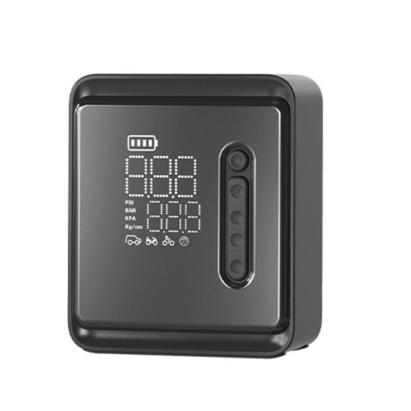 Specifications Name Portable Cordless Tire InflatorMaterial ABS MetalColor BlackProduct Size 130x112x56mmBattery 3 260000 mAh Lithium BatteryPressure Range 2 150 PSIInflation Rate 3 5 L minContinuous Working Time 15 20 minCertificate FCC CE RoHS Features High Capacity Battery Equipped with 3 260000mAh lithium battery our portable air compressor ensures extended operational time This allows for multiple inflation tasks before needing a recharge making it ideal for outdoor activities and emergencies Precise Pressure Control The device features a preset pressure function enabling users to select the exact pressure required for various applications It automatically stops inflating once the desired pressure is achieved ensuring safety and accuracy Rapid Inflation With an inflation rate of 3 5 L min you can quickly and efficiently inflate your car tires bicycle tires and sports balls This saves you time and effort ensuring you re back on the road or field in no time User Friendly Interface The air compressor comes with an easy to read LED display that shows real time pressure readings in PSI BAR KPA and KG CM² The intuitive interface makes it straightforward to operate for anyone ensuring a stress free experience LED Lighting Designed with built in LED lighting this portable inflator is perfect for nighttime use and emergency situations The bright light provides ample visibility ensuring you can safely operate the device even in low light
