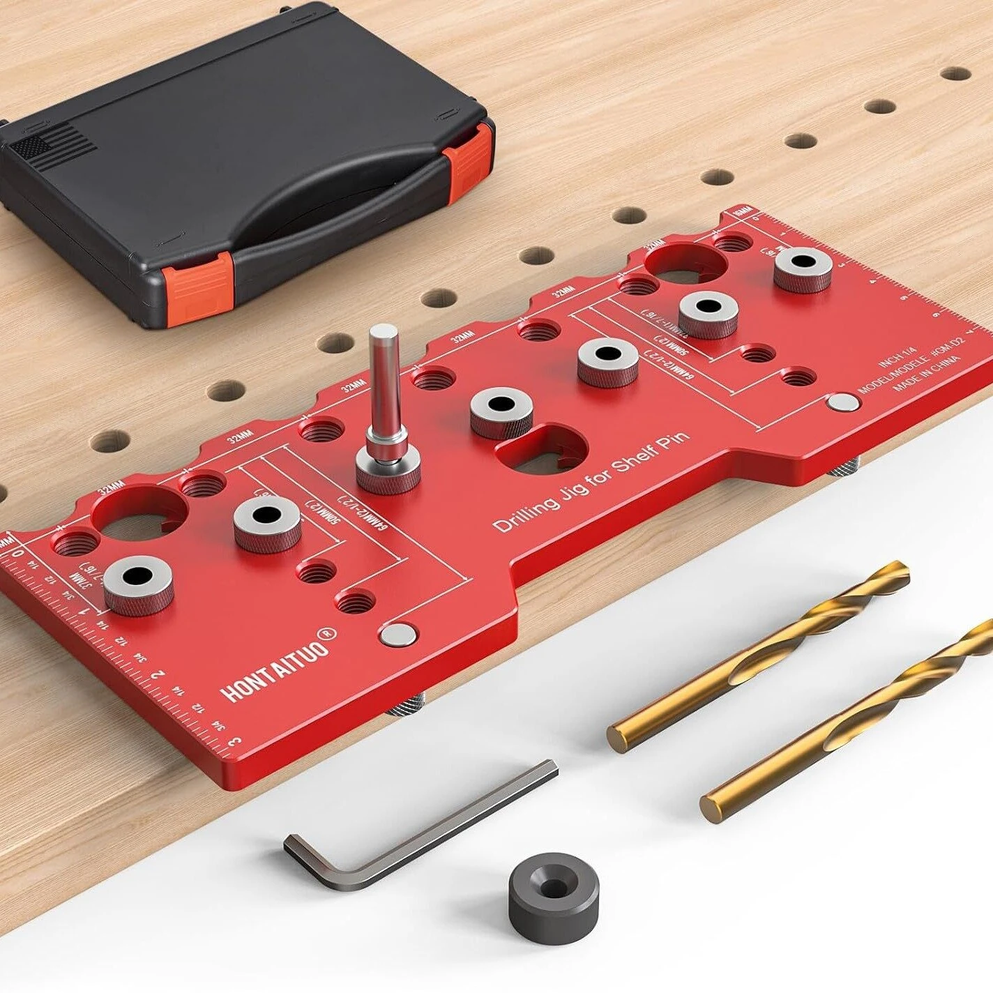 mso-bidi-font-family:'Times New Roman';font-size:10.5000pt;mso-font-kerning:1.0000pt;الميزات:mso-bidi-font-family:'Times New Roman';font-size:10.5000pt;mso-font-kerning:1.0000pt;2 في 1 متعدد الوظائف: يجمع جهاز دبابيس الرف وجهاز المفصلات بين وظائف جهاز دبابيس الرف وجهاز المفصلات في أداة متعددة الاستخدامات. يتيح لك هذا التصميم مزدوج الغرض إكمال عملية تركيب خزائن كاملة بكفاءة، بدءًا من حفر ثقوب دبابيس الرف الدقيقة إلى إعداد المفصلات المخفية. وهذا يجعلها أداة مثالية لكل من هواة الأعمال اليدوية والنجارين المحترفين.mso-bidi-font-family:'Times New Roman';font-size:10.5000pt;mso-font-kerning:1.0000pt;mso-bidi-font-family:'Times New Roman';font-size:10.5000pt;mso-font-kerning:1.0000pt; حل فعال من حيث التكلفة: يتضمن هذا الطقم حجمين من بتات الحفر من الصلب المقوى: 1/4 بوصة (6mm) و 5mm، مما يلبي جميع متطلبات حجم ثقوب دبوس الرف في مرة واحدة. بالإضافة إلى ذلك، يتم تضمين كتلة توقف لمساعدتك في تحقيق أعماق حفر متسقة. يقضي الطقم المتكامل على حاجتك لاستخدام أدوات متعددة، ويوفر حلاً فعالاً من حيث التكلفة لجميع احتياجات تركيب الخزانة والرفوف الخاصة بك.mso-bidi-font-family:'Times New Roman';font-size:10.5000pt;mso-font-kerning:1.0000pt;mso-bidi-font-family:'Times New Roman';font-size:10.5000pt;mso-font-kerning:1.0000pt; الدقة والكفاءة: تم تصميم مثقاب الرف للحصول على الدقة والسرعة ، وقادر على حفر سبعة ثقوب مسمار رف بمقاس 5 مم أو 1/4 "(6 مم) عند بعد 1-1 / 4 بوصة (32 مم) في مرور واحد. يتيح لك دبوس التموضع المضمن توسيع ترتيب الحفر بسهولة. مع إعدادات مسافة الحافة بمقدار 37 مم و 50 مم و 64 مم ، يمكنك تكو
