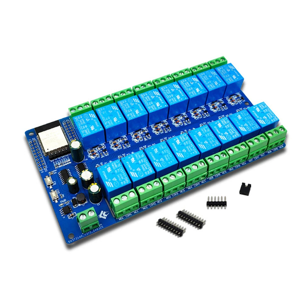 المواصفات:نوع الجهد: 5V، 12V، 24V (اختياري)الجهد المتوفر: 3.3-5Vقنوات الترحيل: 16حجم اللوحة: 165 * 90 مم قطر فتحة التوجيه: 3 ممالوزن: 244 جمالميزات:1. وحدة ESP32-WROOM-32E الناضجة والمستقرة على متن الجهاز، سعة كبيرة 4M بايت فلاش2. يتم سحب جميع منافذ الإدخال / الإخراج وواردات تنزيل برنامج UART لوحدة ESP32 لتسهيل التطوير الثانوي3. دائرة تزويد الطاقة على متن الطائرة من DC-12V إلى 3.3V تدعم DC-12V4. زر إعادة تعيين RST وزر IO0 القابل للبرمجة5. تدعم ESP32 أدوات تجميع IDE الخاصة بـ Arduinno وتوفر برامج مرجعية ضمن بيئة تطوير Arduinno6. 16 مرحل 5 فولت مثبت، إشارة التبديل المخرجة، مناسبة للتحكم في جهد التحكم AC250V/DC30V ضمن الحمولةيشمل الحزمة:1 x وحدة ريلي2 x دبوسملحوظة:بسبب الاختلاف في الضوء والشاشة، قد يكون لون العنصر مختلفًا قليلاً عن الصور.2. يرجى السماح بفروق تتراوح بين 1 مم و 1 سم بسبب القياس اليدوي.