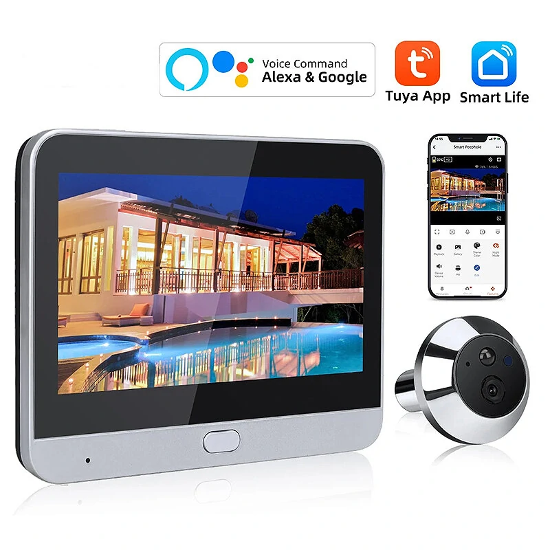 Özellikler:Güç Kaynağı: Şarj edilebilir 5000mAh lityum-iyon pilKamera Çözünürlüğü: 2 milyon piksel veya 1080P HDKamera Görüş Açısı: 120 dereceEkran: 4.3 inç TFT renkli LCD ekranHareket Sensörü Tepki Süresi: Yüksek hassasiyetli olarak kullanılabilen çeşitli hassasiyet ayarlarıyla, yaklaşık 1 ila 3 saniye gecikme yaşanır.Video Formatı: .avi (TF kart veya bulut hizmeti gerektirir)Bellek Kartı Kapasitesi: 128GB'a kadar desteklerHareket Sensörü Algılama Mesafesi: Yaklaşık 2 metreKapı kalınlığı uyumluluğu: 35-115 mmGözetleme Deliği Çapı: 15-36mmZil paylaşımı: EvetÇalışma Sıcaklığı: -20 ila 55 derece SantigratAPP: TuyaSmart/SmartLifeBekleme süresi: Normal kullanımla yaklaşık 30 gün (günde 3-5 kez)Özellikler:1. Yüksek Çözünürlüklü Kamera: Cihaz, net video kalitesi için 1080P HD çözünürlük sağlayan 2 milyon piksel kameraya sahiptir.2. Geniş Görüş Açısı: Kapı zili kamerası 120 derecelik geniş bir görüş açısı sağlayarak ön kapınızın bölgesel bir görünümünü sunar.3. Hareket Sensörü: Hareket sensörü yaklaşık 2 metre içinde insanları algılayabilir. Hareket sensörü hassasiyeti, kişiselleştirilmiş güvenlik ihtiyaçları için uygulamada ayarlanabilir.4. Uzun Ömürlü Pil Ömrü: Cihaz, 5000mAh'lik şarj edilebilir bir lityum iyon batarya üzerinde çalışır ve tipik kullanımla yaklaşık 30 günlük bekleme süresine izin verir.5. Akıllı Uygulama Entegrasyonu: Tuyasmart/SmartLife uygulaması ile çalışır, gerçek zamanlı hatırlatıcılar sağlar ve paylaşma yetenekleri sunar.Paket içeriği:1x Kapı içi Ana Bilgisay