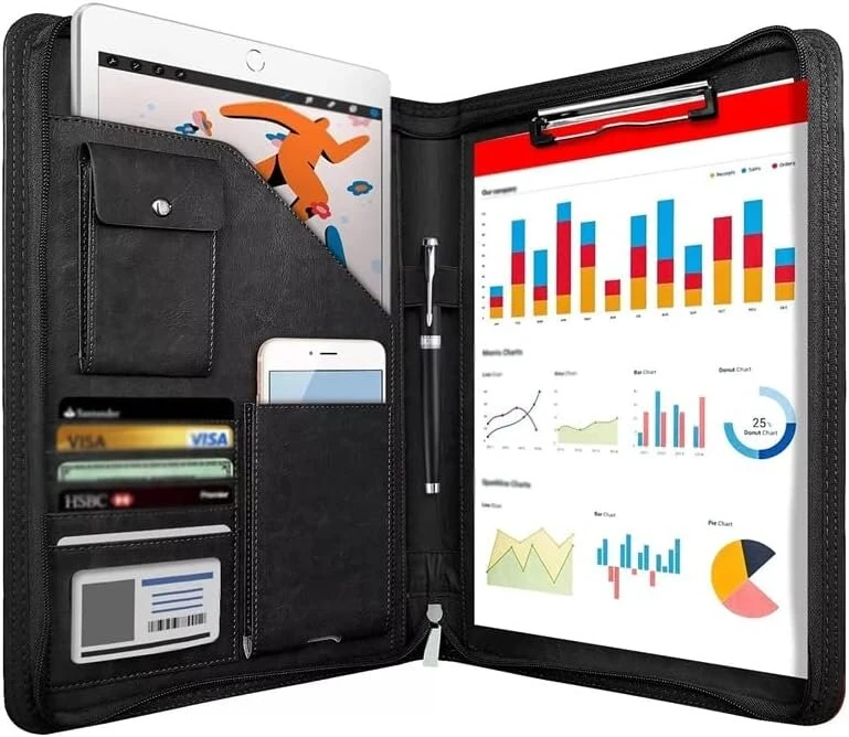 사양:이름: A4 파일 폴더커버 소재: PU 가죽색상: 갈색, 검정색크기: 약 245*325mm (9.65*12.8 인치)특징:1. 지퍼 디자인으로 열고 닫기가 쉽고,공간을 절약하며,내마모성이 있고,미끄럽지 않으며,문서의 내용을 보호할 수 있습니다.2. 파일이 쉽게 떨어지지 않습니다. 사용하기 편리합니다.3.청소하기 쉬움: 부드러운 젖은 천으로 부드럽게 닦아주세요.4. 문서와 문구류를 정리하기 위한 여러 개의 구획.5. 안전한 보관을 위한 편리한 지퍼 잠금 장치,개인적 및 전문적 용도에 적합합니다.패키지에 포함되어 있는 것:A4 파일 폴더 1개참고: 위의 패키지 내용만 포함되며,다른 제품은 포함되지 않습니다.