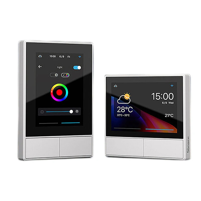 Spécifications:Wi-Fi: IEEE 802.11 b/g/n 2,4 GHzSystèmes d'exploitation de l'application : compatibles avec Android et iOSNorme Bluetooth : 4.2 BLEMatériaux du boîtier : Fabriqué à partir de PC VO+CRS+Verre Trempé100-240V ~ 50/60Hz 4A MaxTaille de l'écran TFT: 3,5" (Panneau tactile capacitif)Dimension: NSPaneI-EU- 86x86x41.7mm, NSPanel-US- 120x74x41.7mm100-240V - 50 / 60Hz 2A / Groupe 4A / Charge Totale LED 150W / 10V / Groupe, 300W / 110V / Total, 300W / 220V / Groupe, 600W / 220V / TotalRésolution d'écran: 480*320pxFonctionnalités:1. Connectivité intelligente: utilise à la fois le Wi-Fi avec une norme de l'IEEE 802.11 b/g/n 2,4 GHz et le Bluetooth 4.2 BLE pour une connexion transparente avec vos gadgets intelligents.2. Contrôle de l'application : Compatibilité avec Android et iOS via une application conviviale où vous pouvez gérer la température de votre domicile à distance.3. Capacité de sortie élevée: Il est livré avec une capacité de sortie élevée de 600W/220V au total, ce qui le rend suffisamment puissant pour gérer la plupart des appareils électroménagers de votre maison.4. Écran tactile : est doté d'un écran tactile capacitif de 3,5" qui dispose d'une résolution élevée de 480*320px pour une utilisation efficace et un affichage visuel clair.5. Compatibilité polyvalente: il prend en charge l'affichage de la température et est une télécommande tout-en-un qui fonctionne avec Alexa et Google Home pour les contrôles activés par la voix.Inclus dans le pack :1x Interrupteur mu